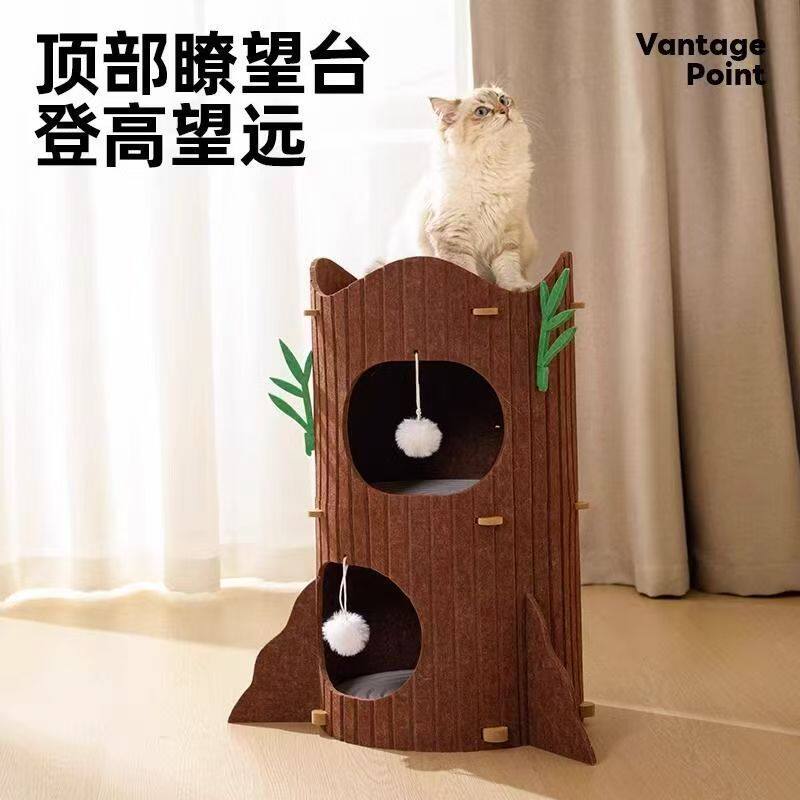 猫爬架猫窝一体多窝猫爬柱毛毡树洞猫窝四季双层猫别墅毛毡猫窝