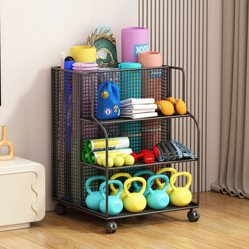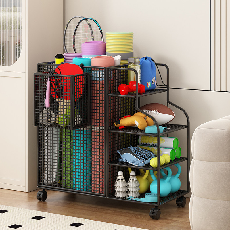 瑜伽垫收纳筐家用运动健身器材箱哑铃篮球羽毛球拍夹缝移动置物架