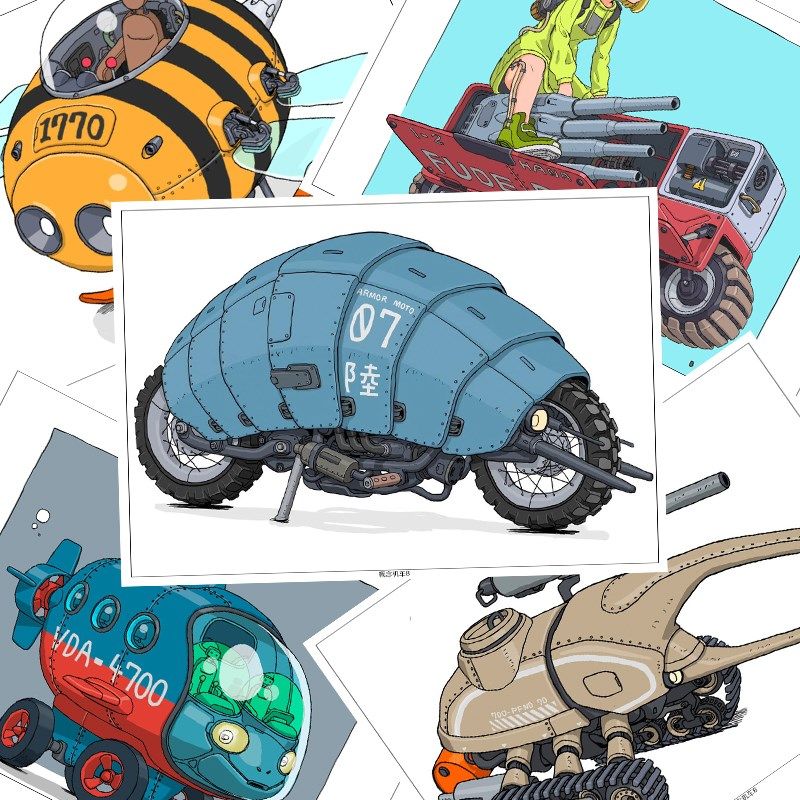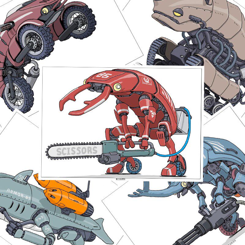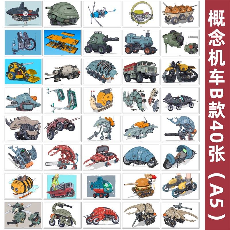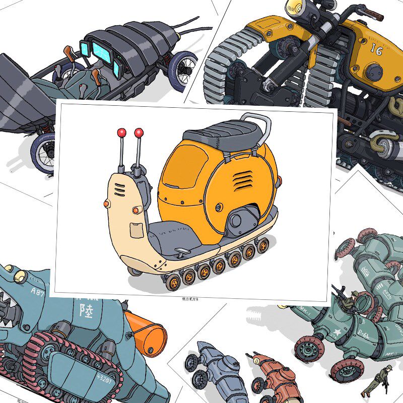 少儿美术科幻机甲交通机车武器概念仿生设计创意插画中小学临摹卡