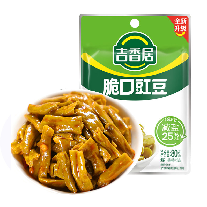 吉香居豇豆80g四川泡椒豇豆脆口红油豇豆麻辣香辣下饭酸豆角