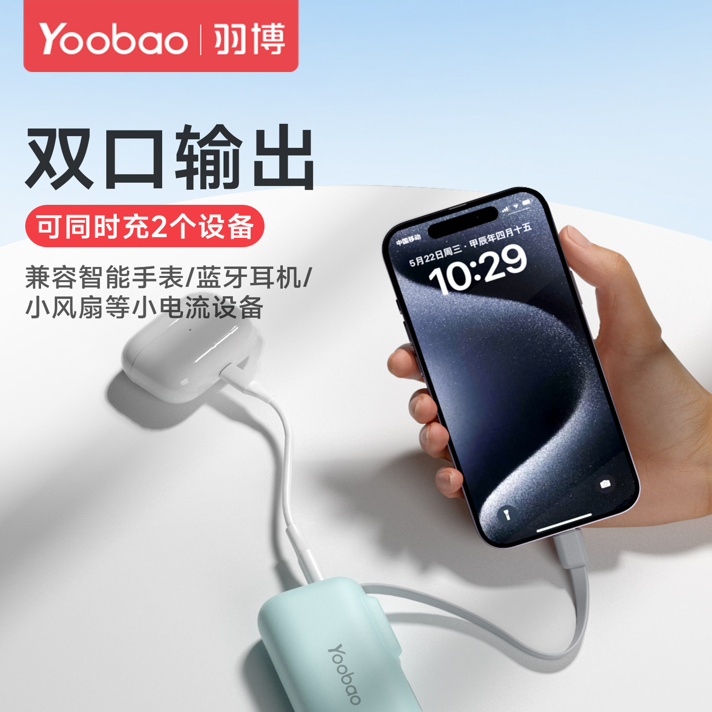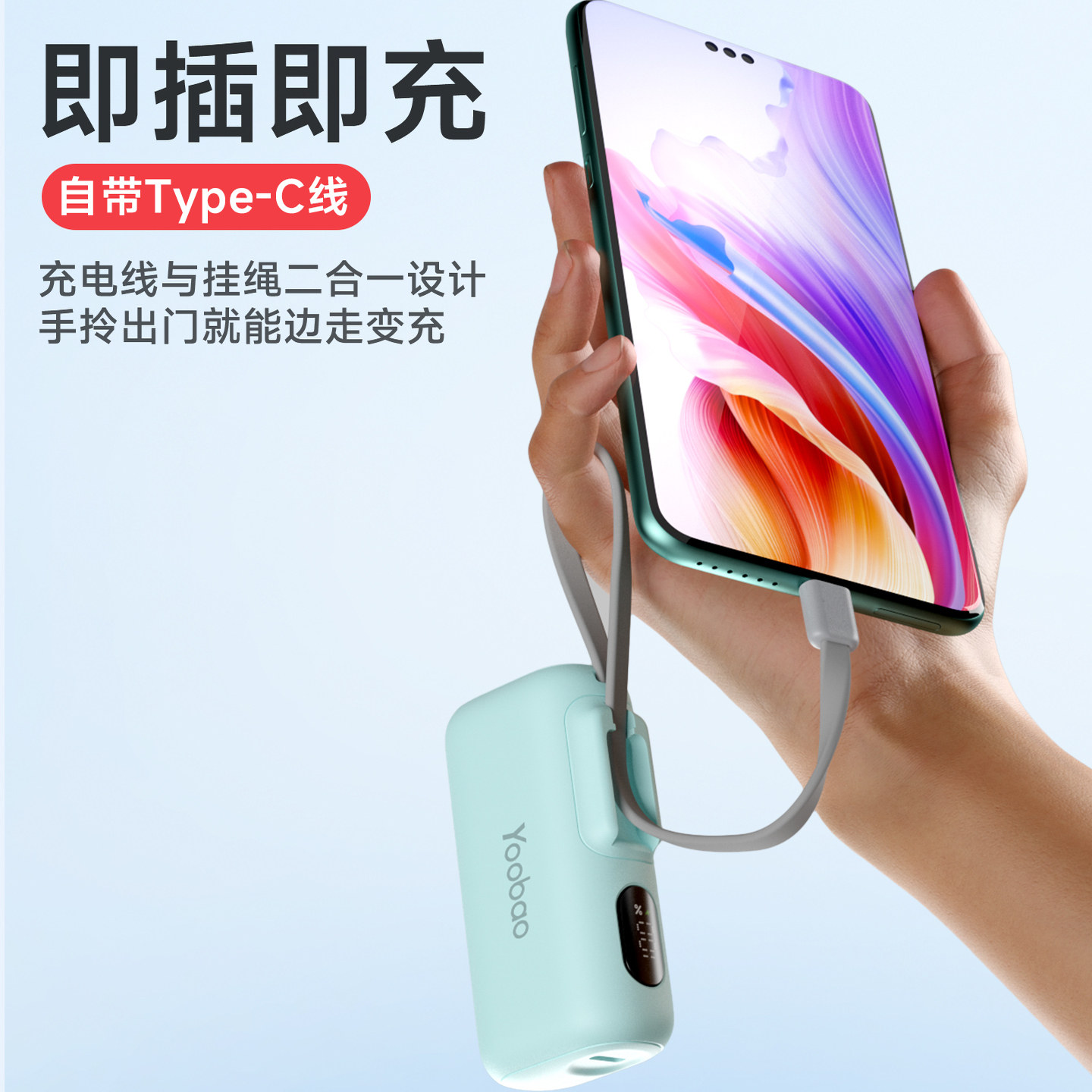 新国标3C认证羽博胶囊充电宝自带线迷你小型便携随身携带快充应急