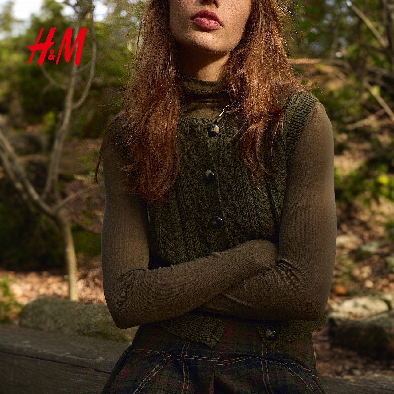 HM春季女装绞花针织马甲1305699