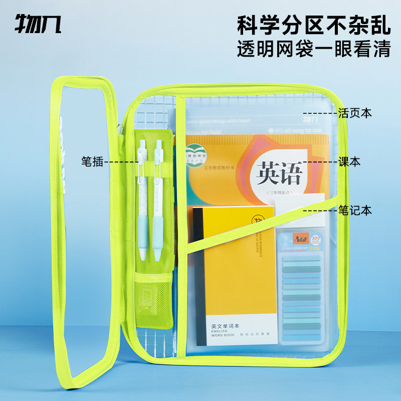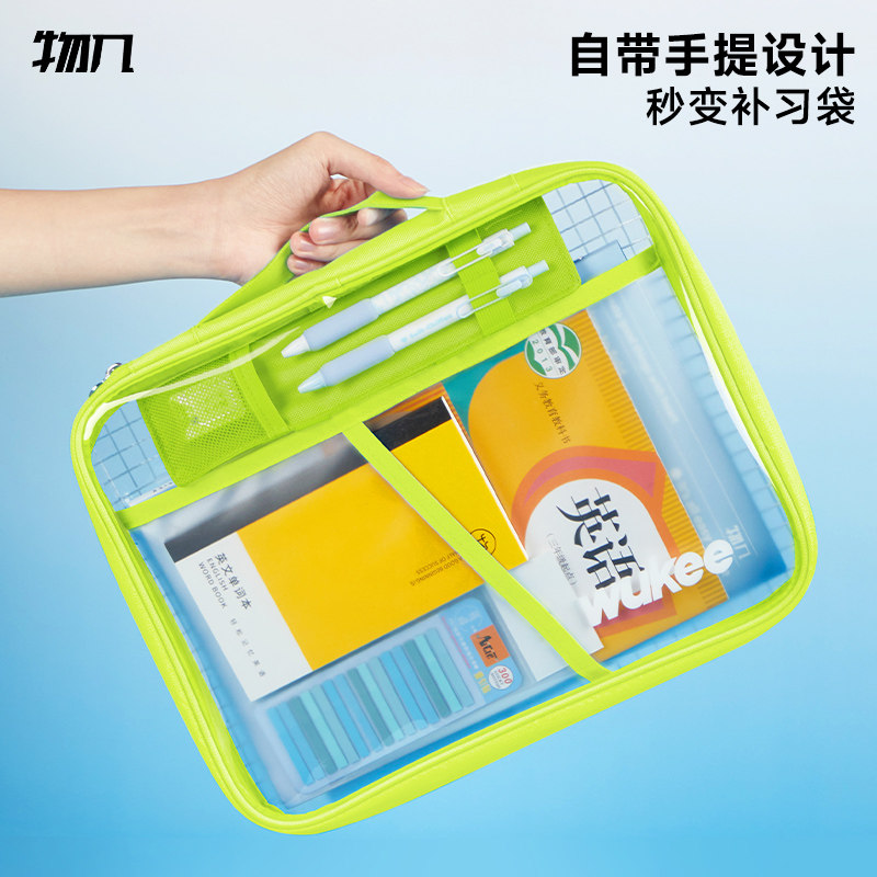 物几 笔插式文件袋学生科目分类手提拎书作业补习袋防水耐脏男女生书包大容量学具资料整理收纳袋加厚透明
