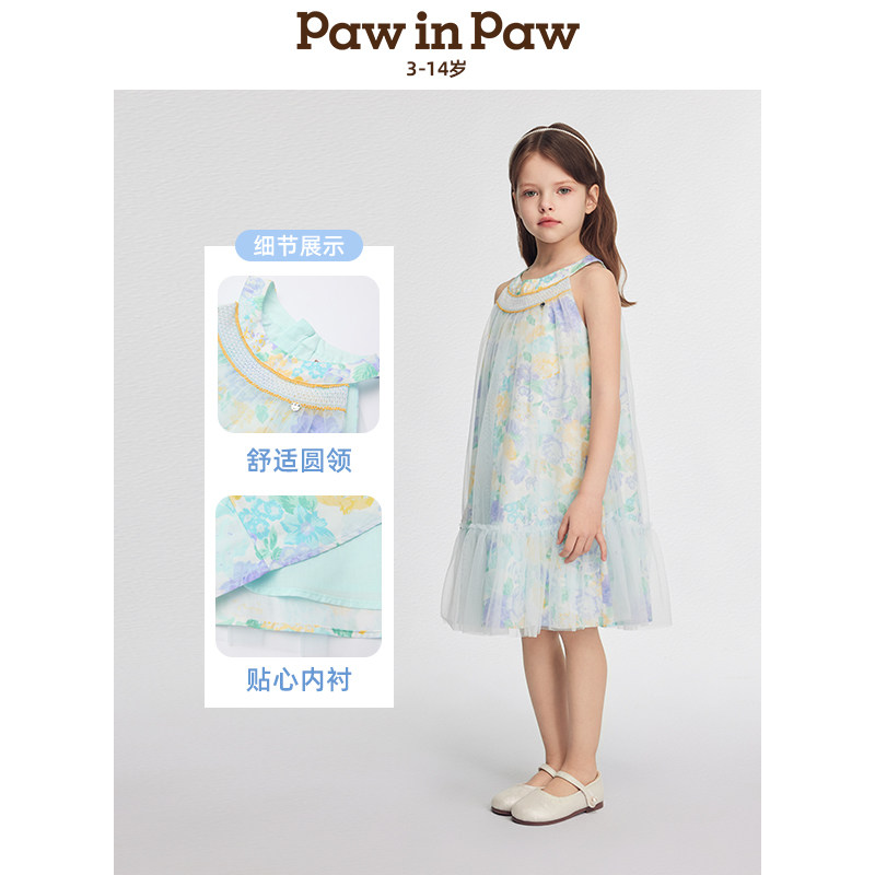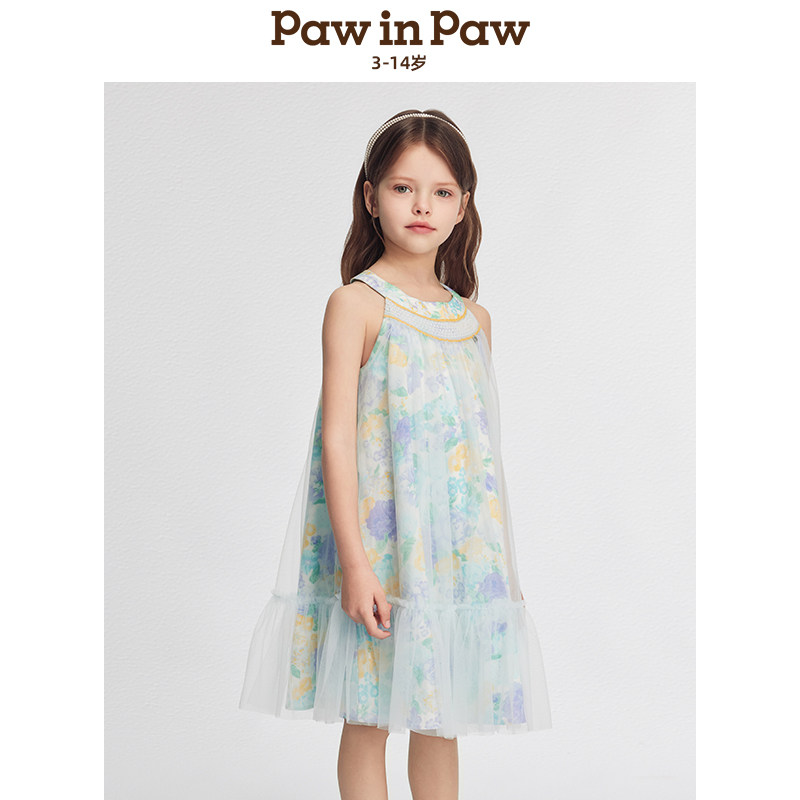 PawinPaw卡通小熊童装春夏女童网纱连衣裙浪漫公主裙
