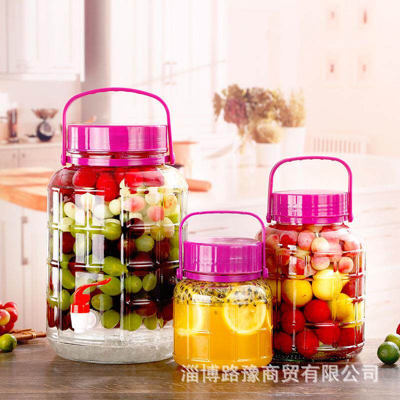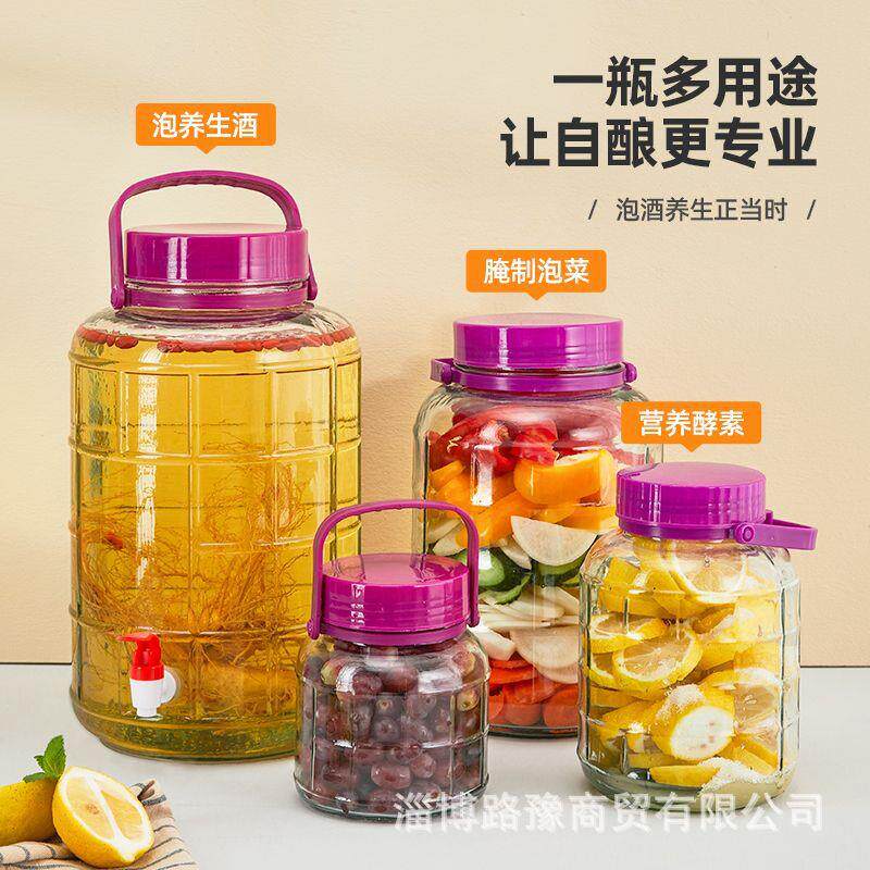 泡酒玻璃瓶密封玻璃罐厨房玻璃酿酒罐方格泡酒瓶泡菜坛储存好物