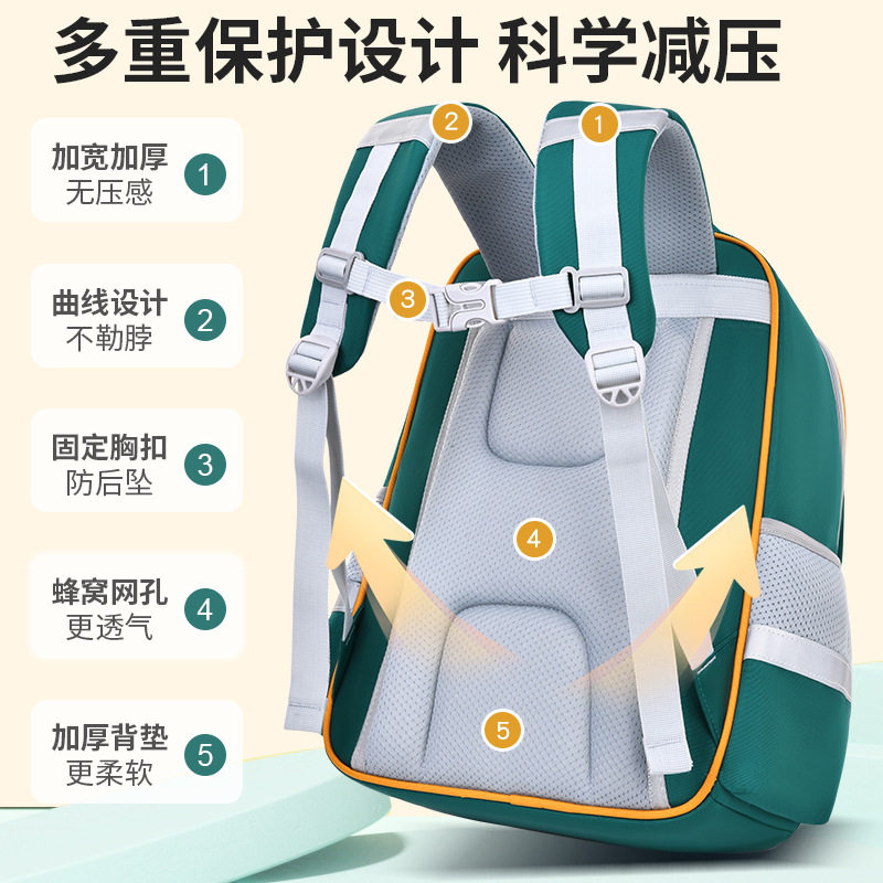 新款小学生书包1-6年级护脊减负轻感背负反光设计大容量男女通用