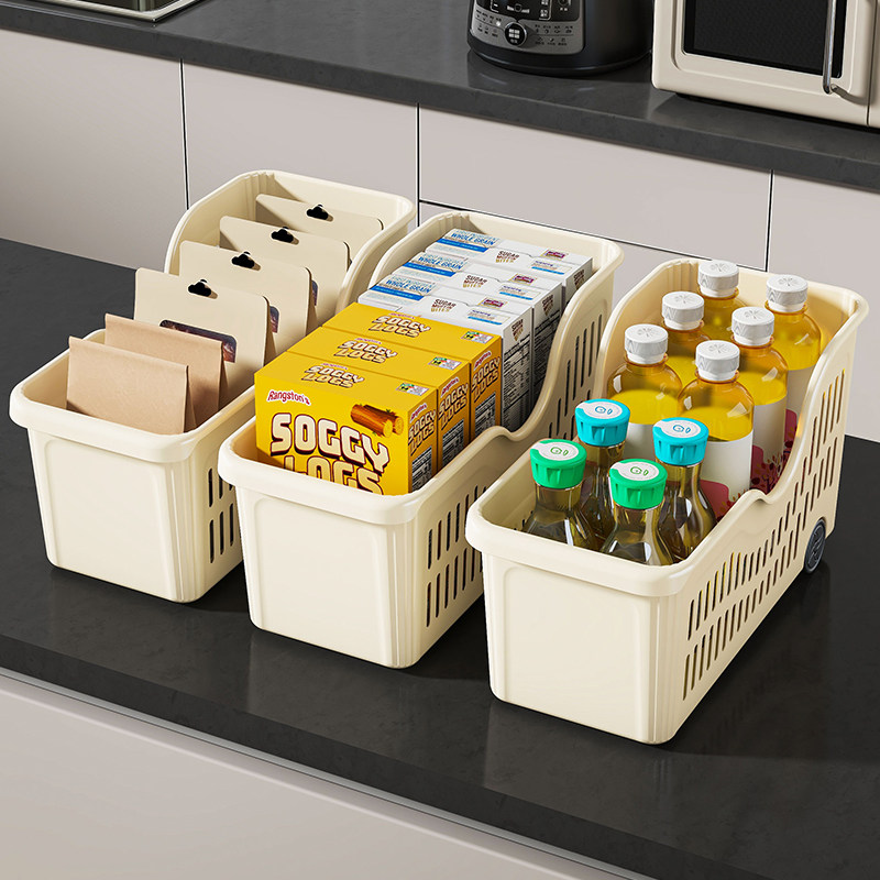 调料锅具收纳盒带轮厨房橱柜整理盒滚轮收纳神器拉篮储物盒置物架