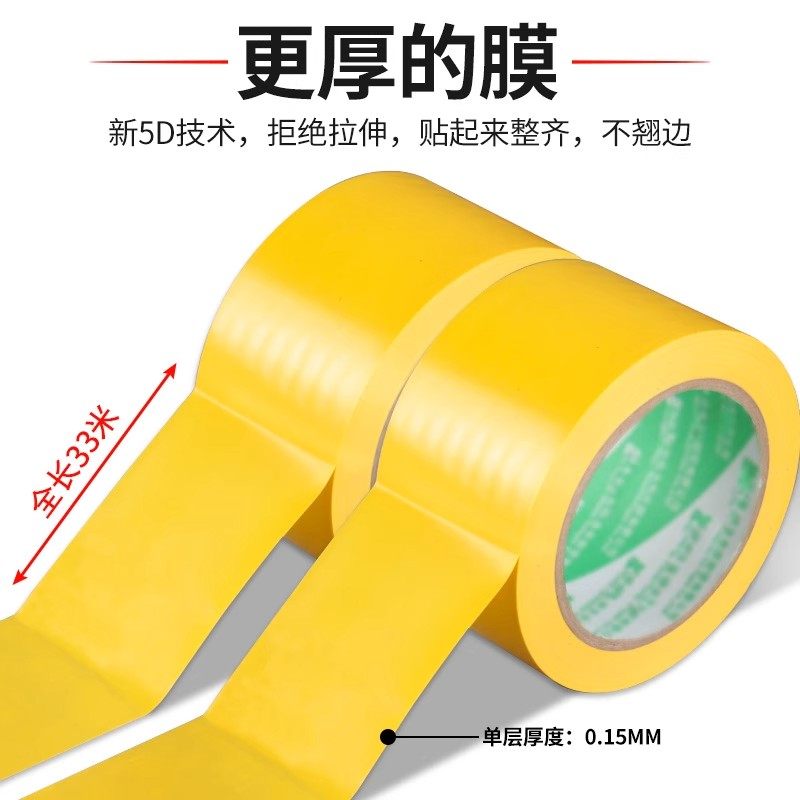 PVC黄色警示胶带地贴地面保护膜专用黑黄斑马线警戒带隔离带消防标识定位胶带车间划线加厚耐磨地板胶带