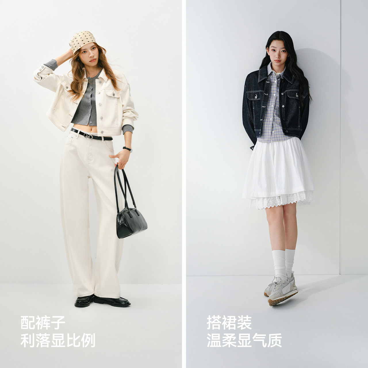 短款视觉优化身材比例 时髦工装风