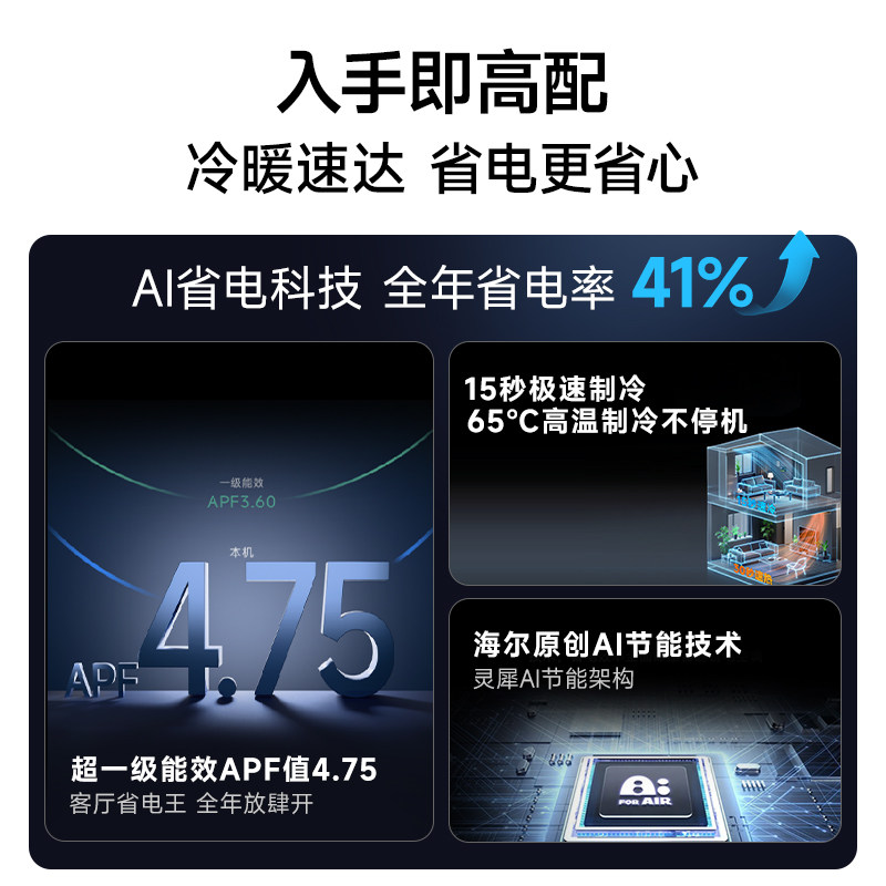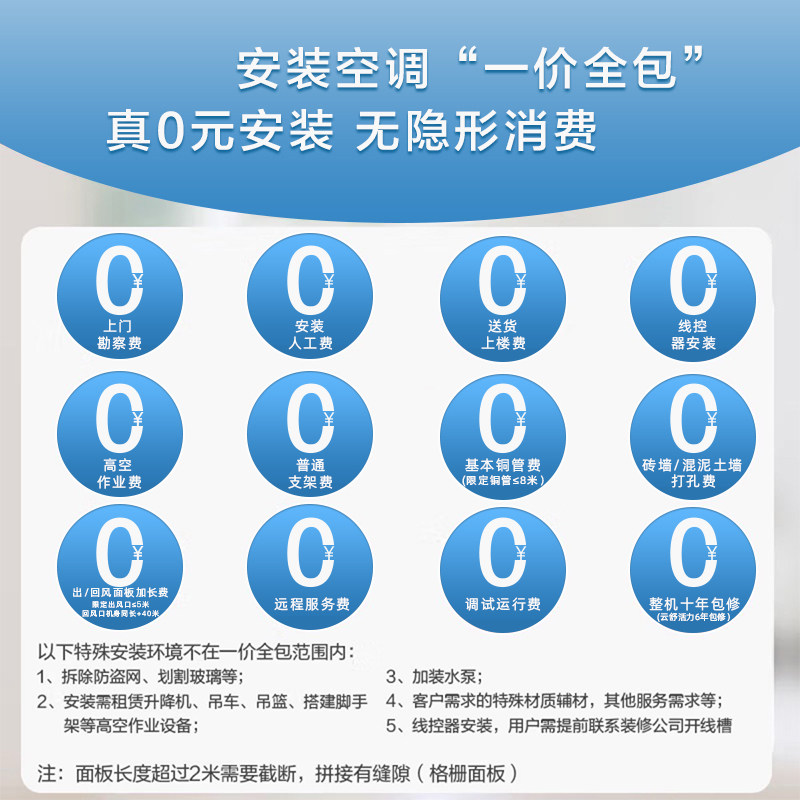 海尔出品统帅中央空调超省电3P4P风管机一拖一客厅一价全包