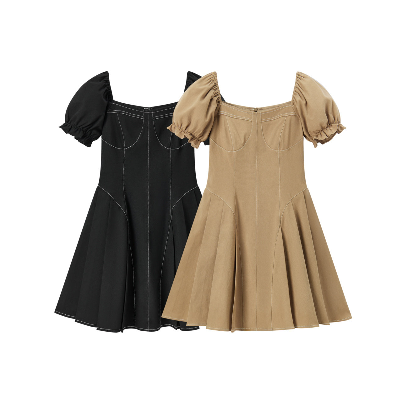 遮肉显瘦泡泡袖 挺括有型百褶裙摆 明线分割