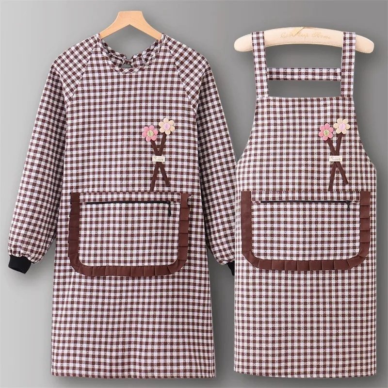 围裙女厨房罩衣上班工作服长袖棉布做饭防污透气耐磨时尚新款网红