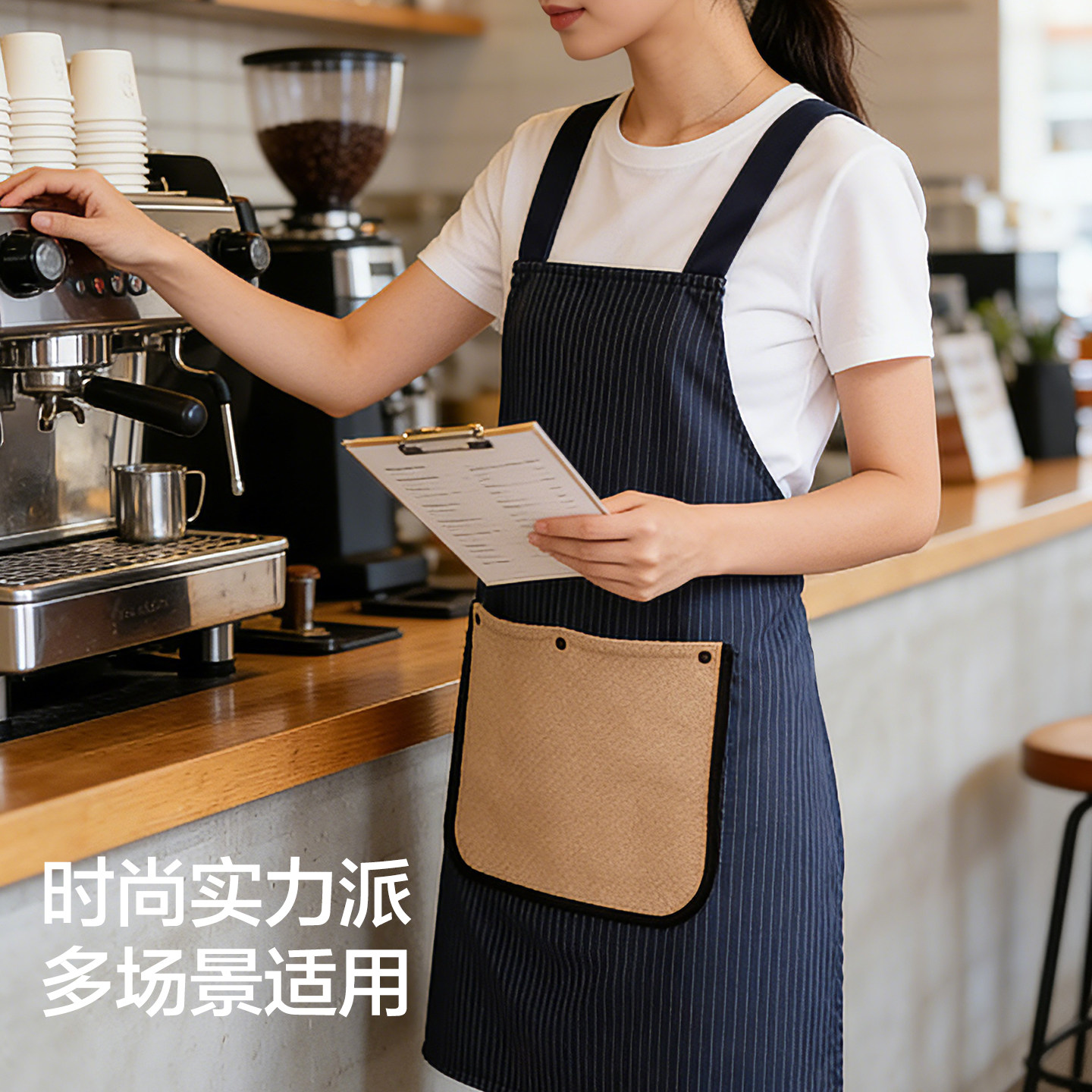 厨房小清新围裙ins风工作服可调节文艺家用防脏定制logo棉麻围腰