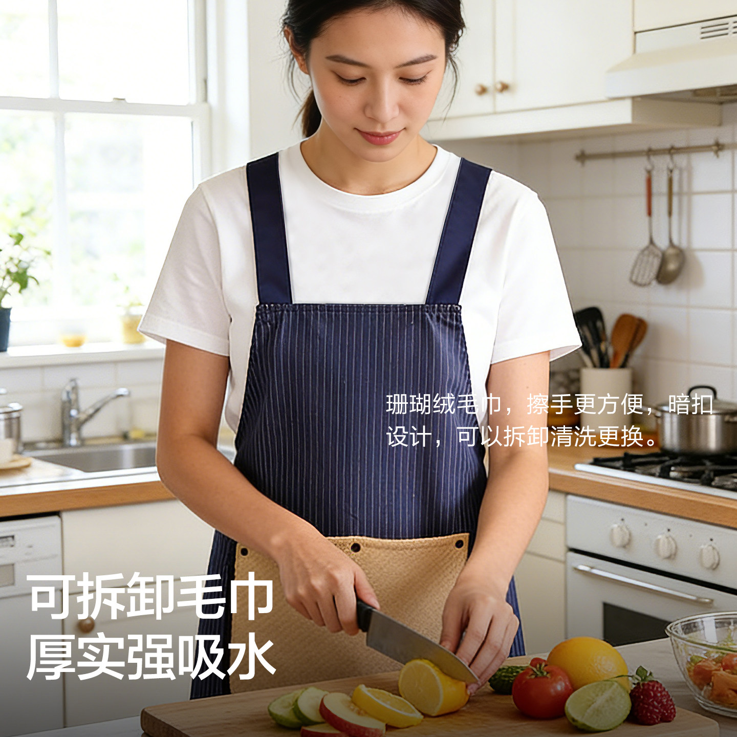 三利可擦手围裙厨房家用2025新款女防水防油上班专用工作服罩衣