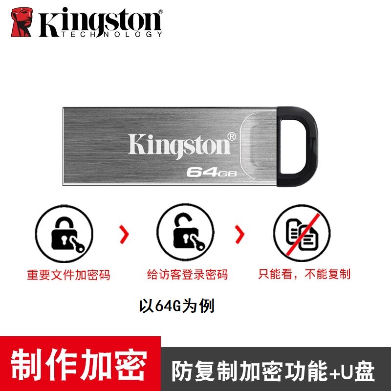 金士顿可加密的u盘64g128G256G高速密码防复制防拷贝电脑优盘办公