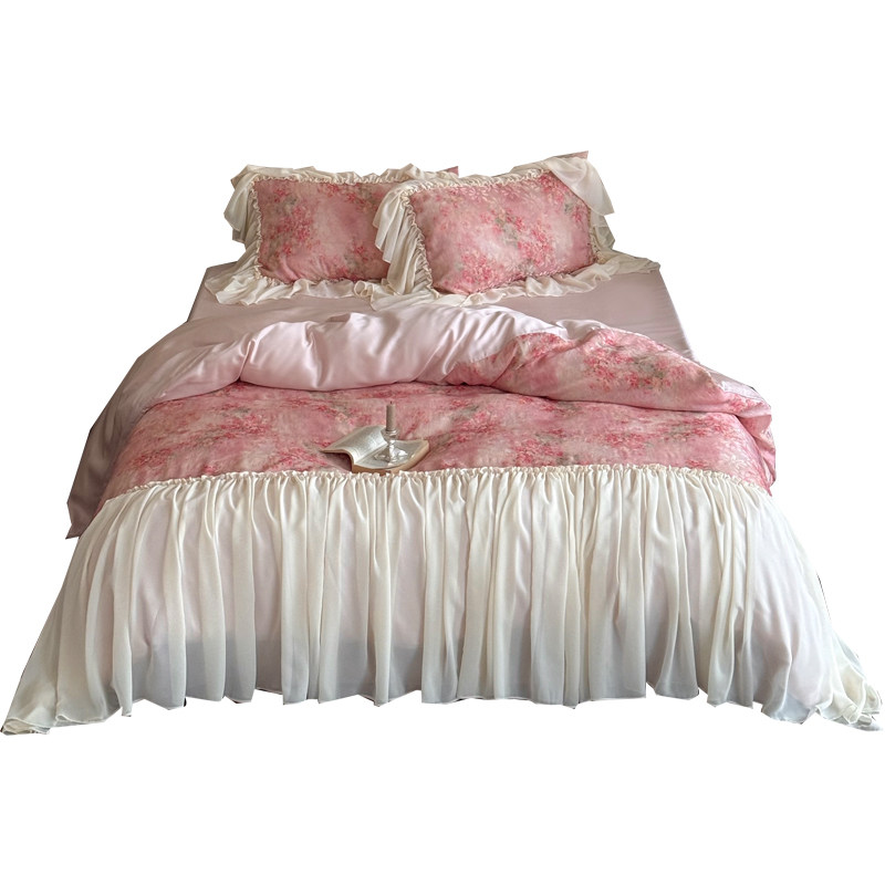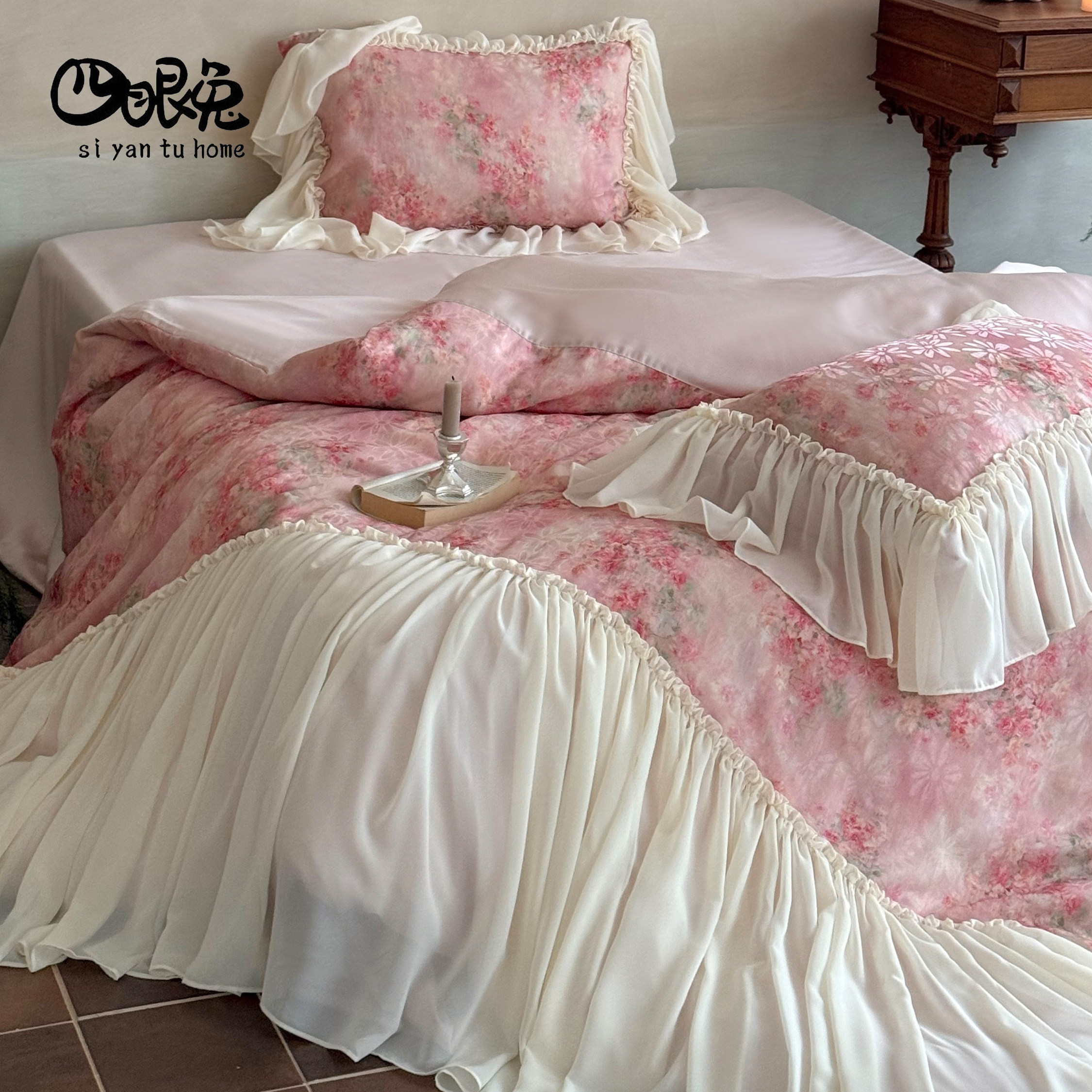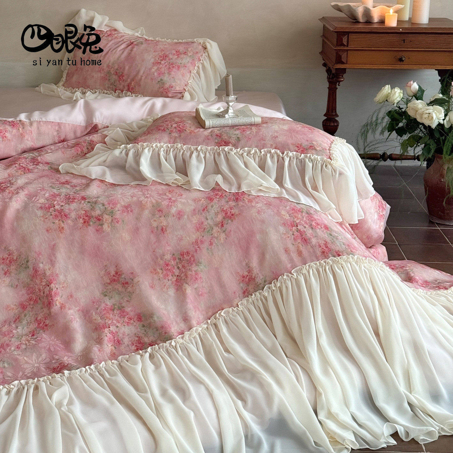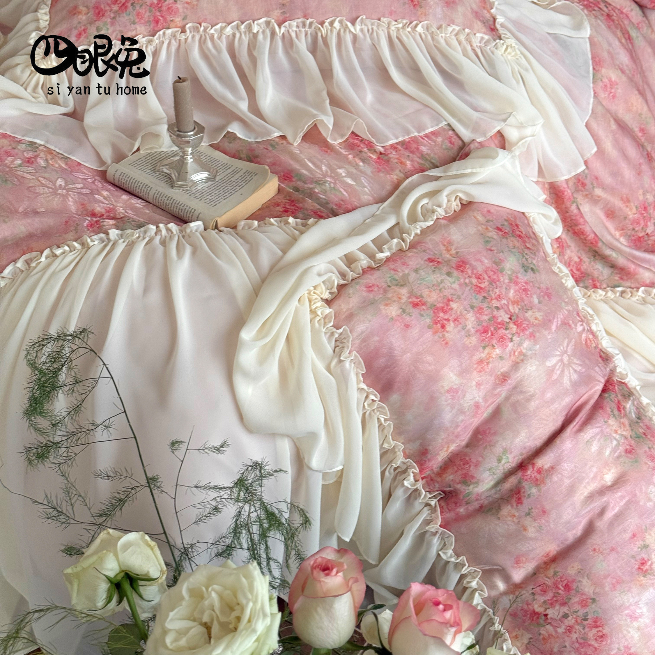 粉黛花靡︱法式浪漫夏季天丝四件套小众少女雪纺花边丝滑被套床品