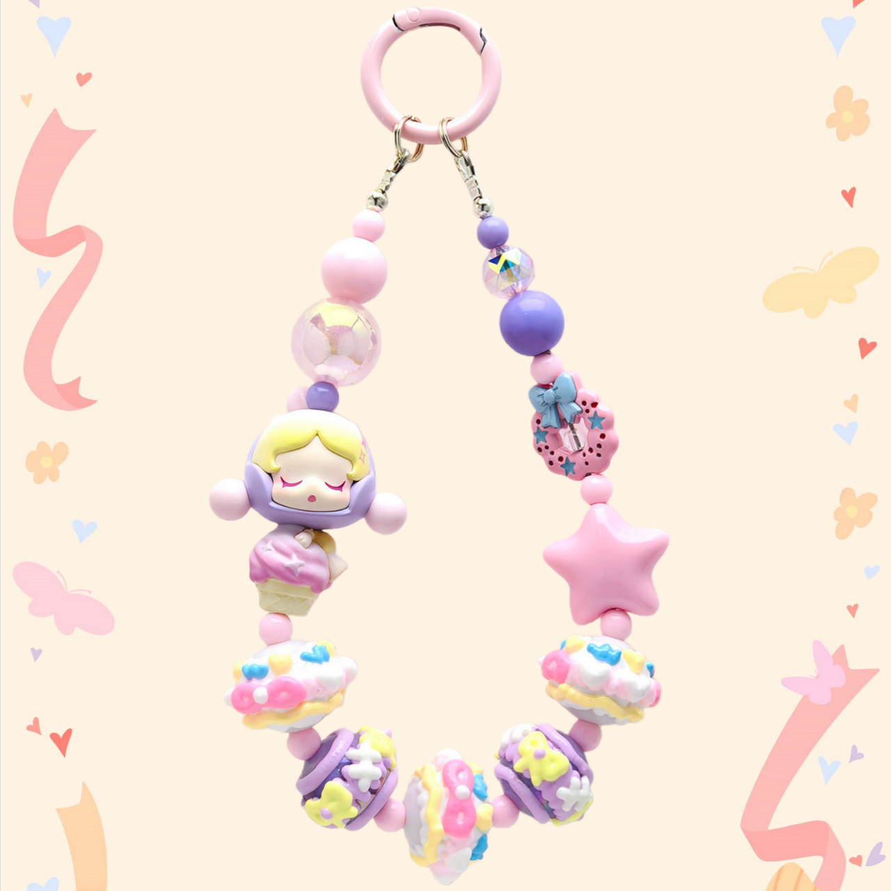 diy原创泡泡正版萌粒SKULLPANDA手机链挂绳钥匙包挂车挂件手腕链