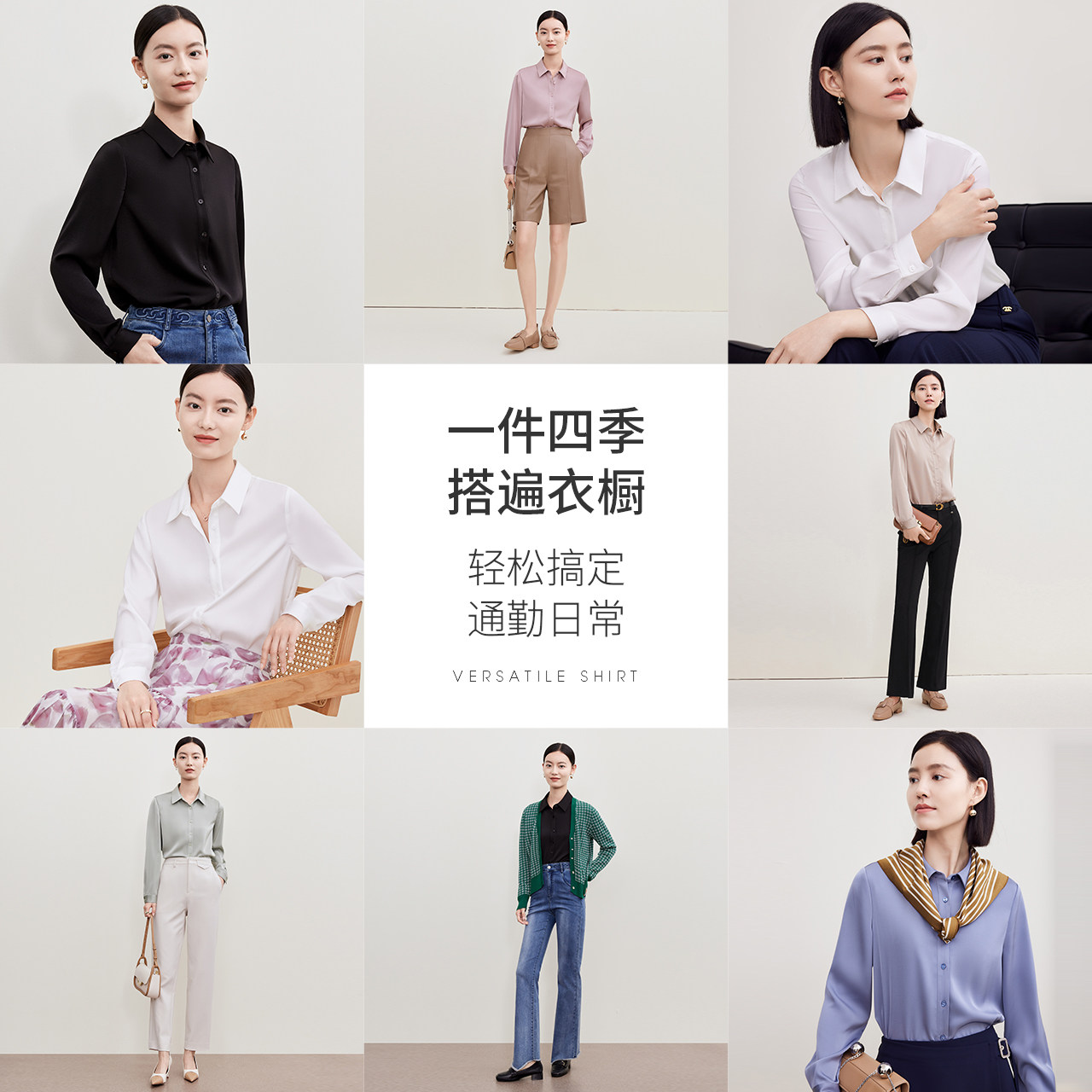 菲妮迪品牌衬衫2025秋季新款简约时尚通勤纯色百搭气质长袖上衣女