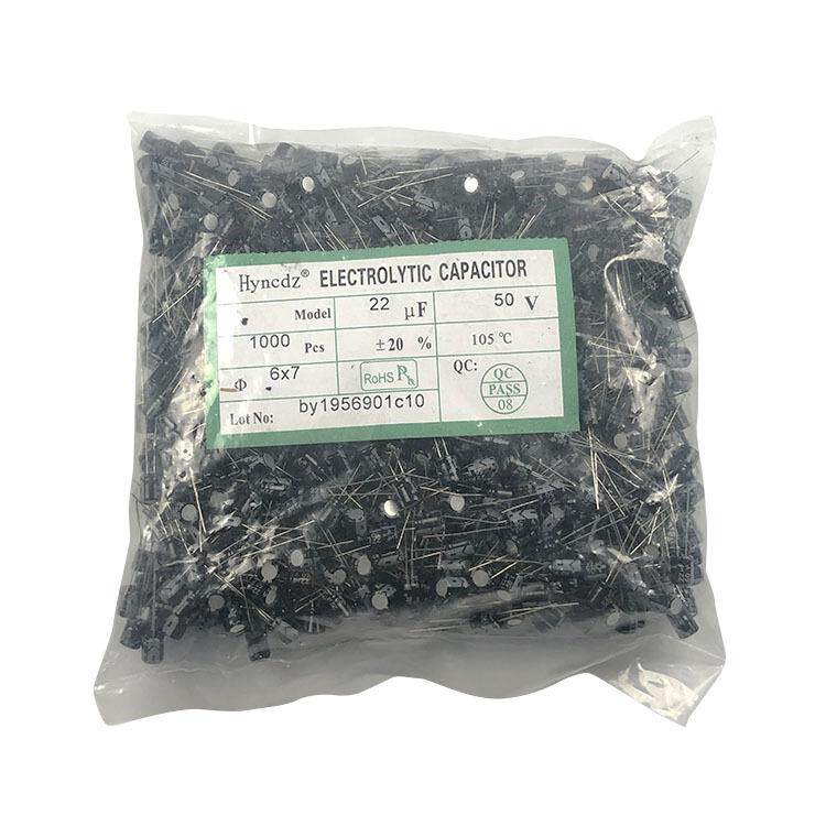 插件铝电解电容 6X7mm 50V 22UF 体积:6*7mm 充电器电容