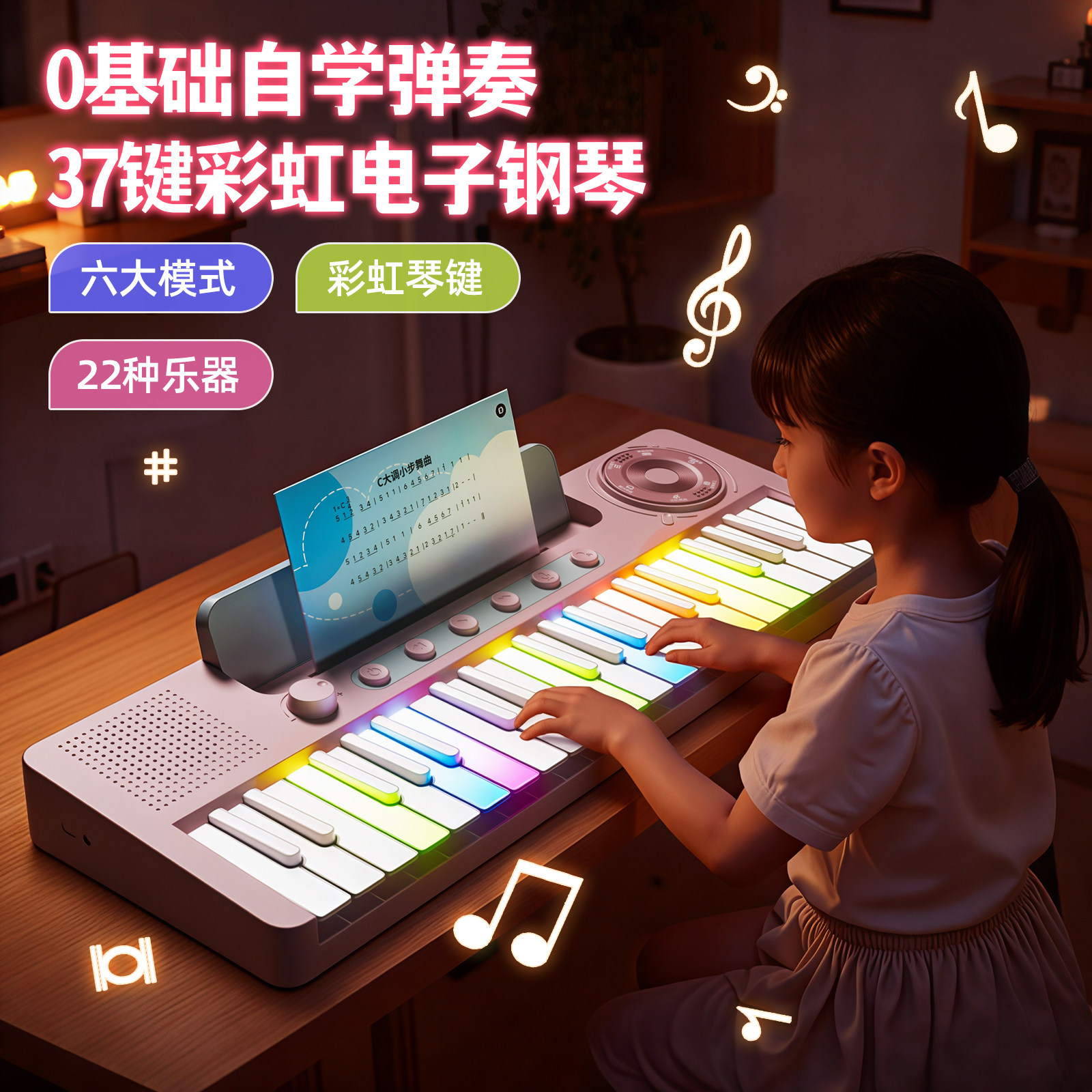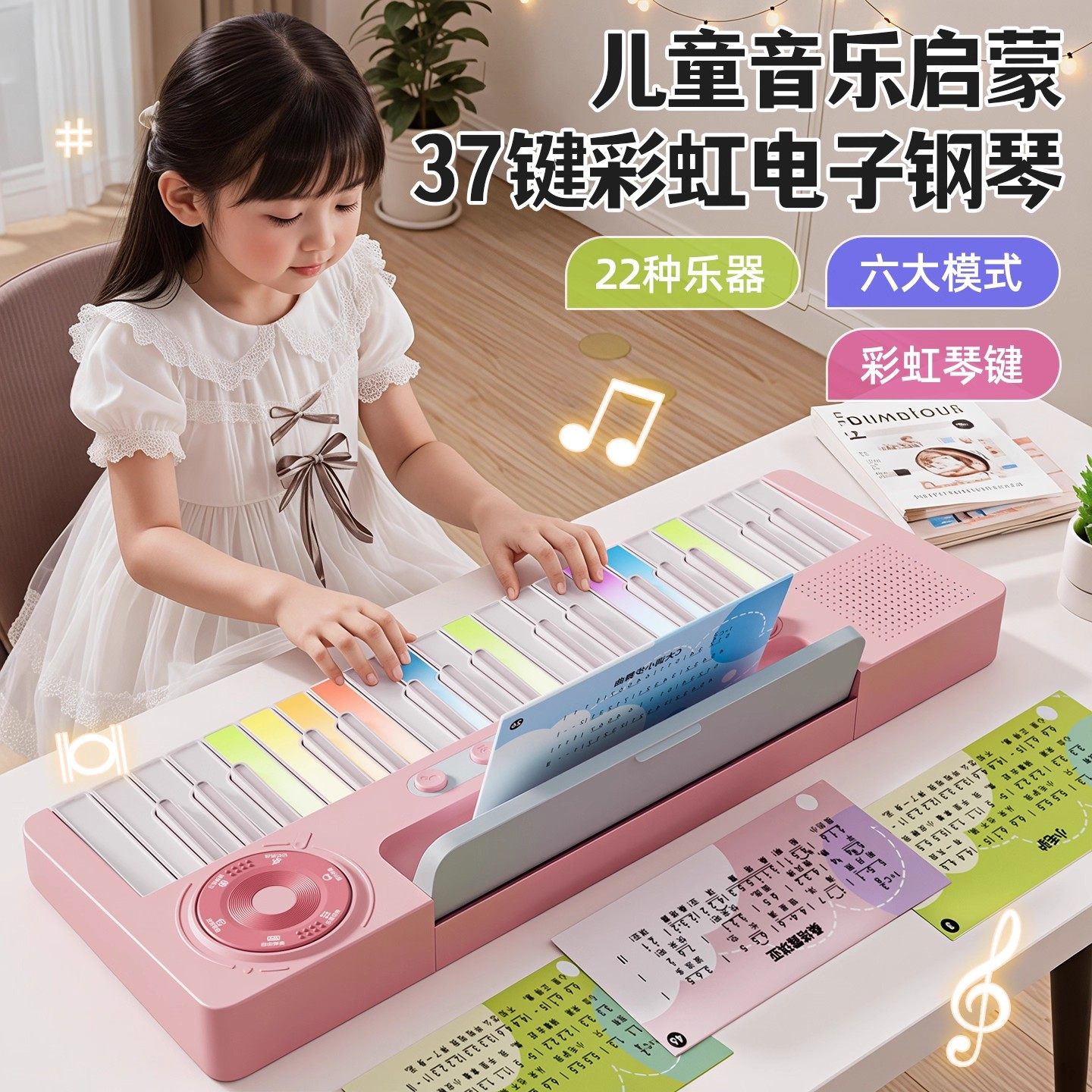37键彩虹电子钢琴儿童初学入门可弹奏乐器小女孩宝宝玩具圣诞礼物
