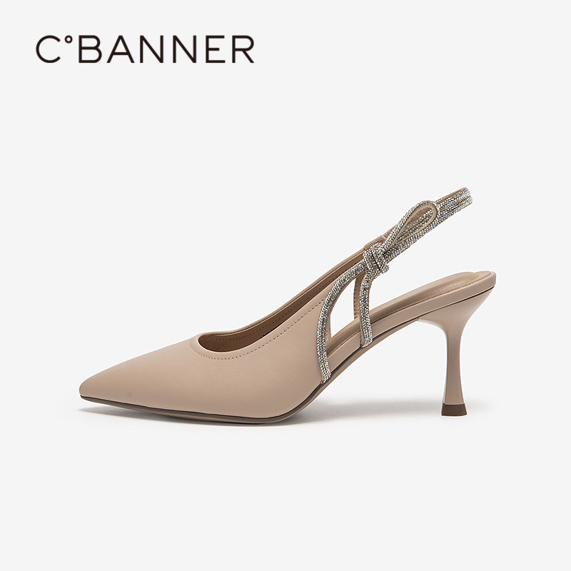 73hours女鞋都市光影2025春季新款银色包头后空凉鞋尖头高跟鞋女