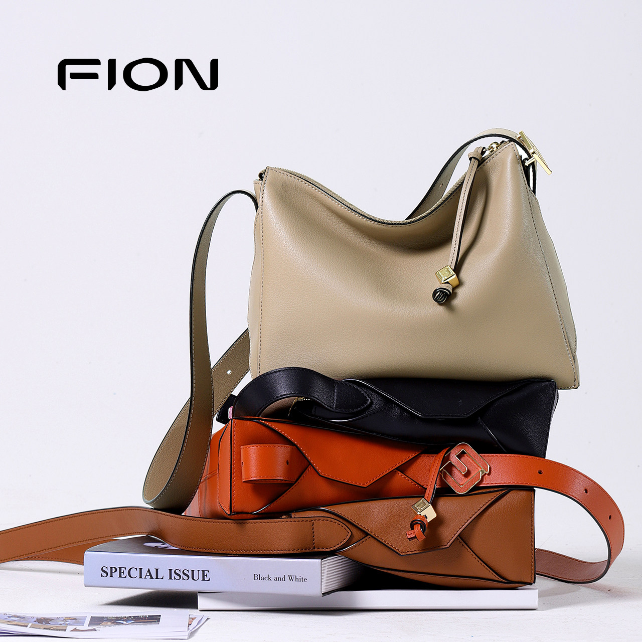 Fion/菲安妮叠叠包hobo托特包女头层牛皮通勤包包腋下单肩斜挎包