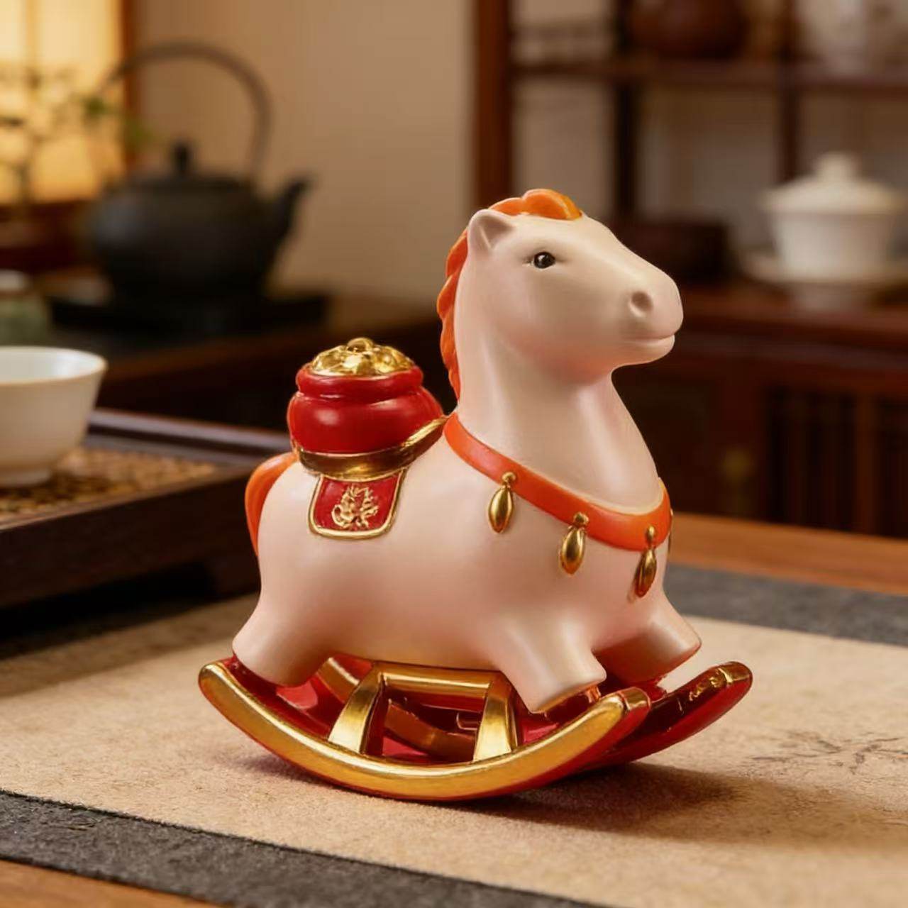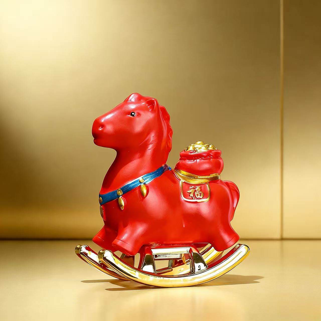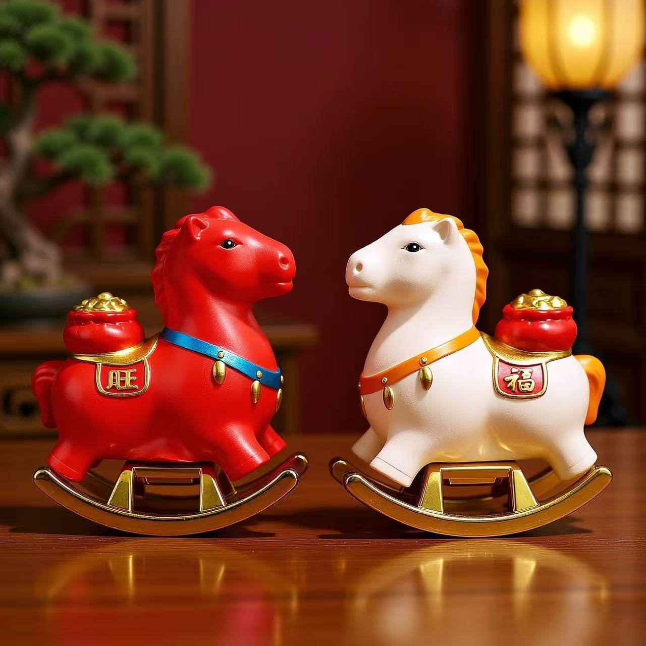 新款吉祥物生肖摇摇马创意摆件卡通国潮马办公室桌面装饰商务礼品
