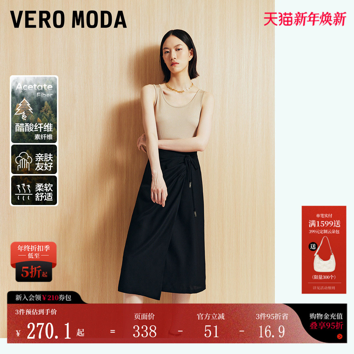 Vero Moda半身裙秋冬一片式系带抽褶长裙时尚长裙324316023