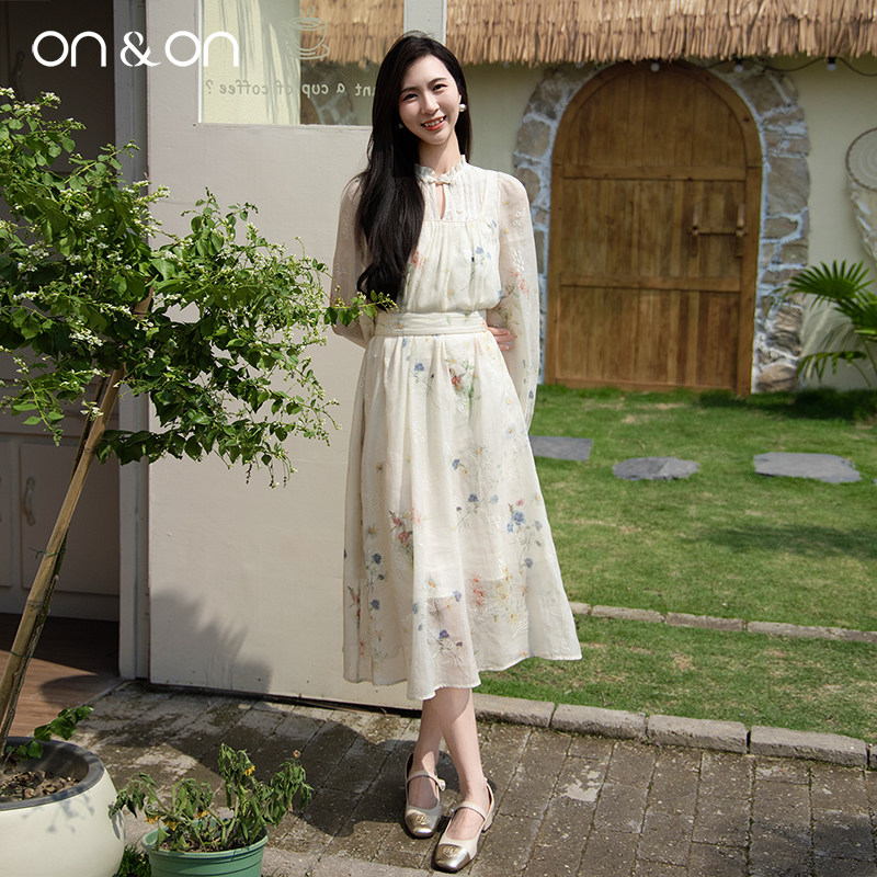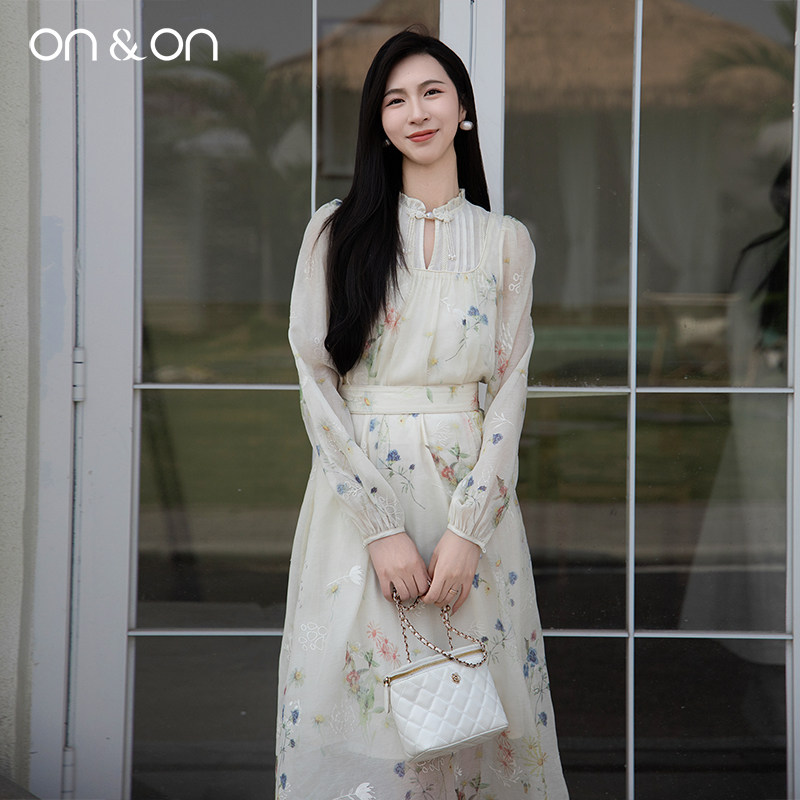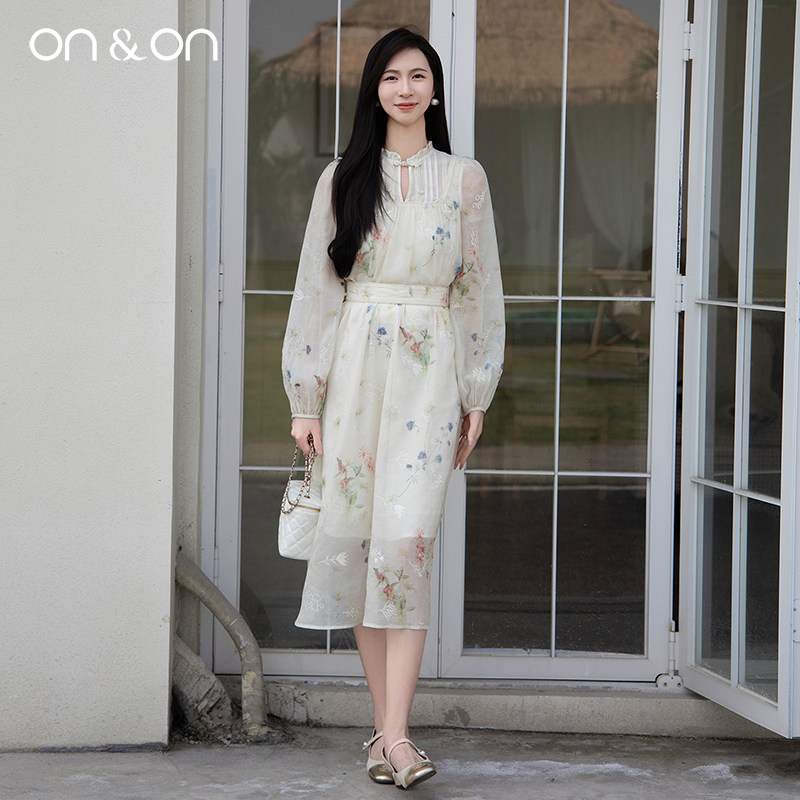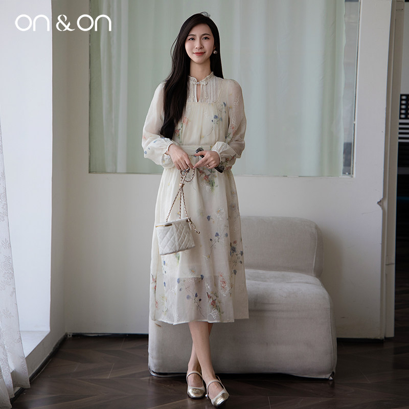 ON&ON/安乃安2025秋冬新款新中式绣花系带气质户外防晒连衣裙