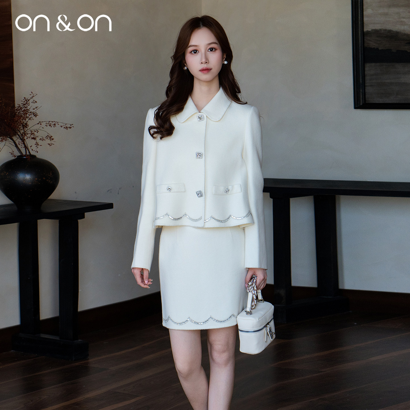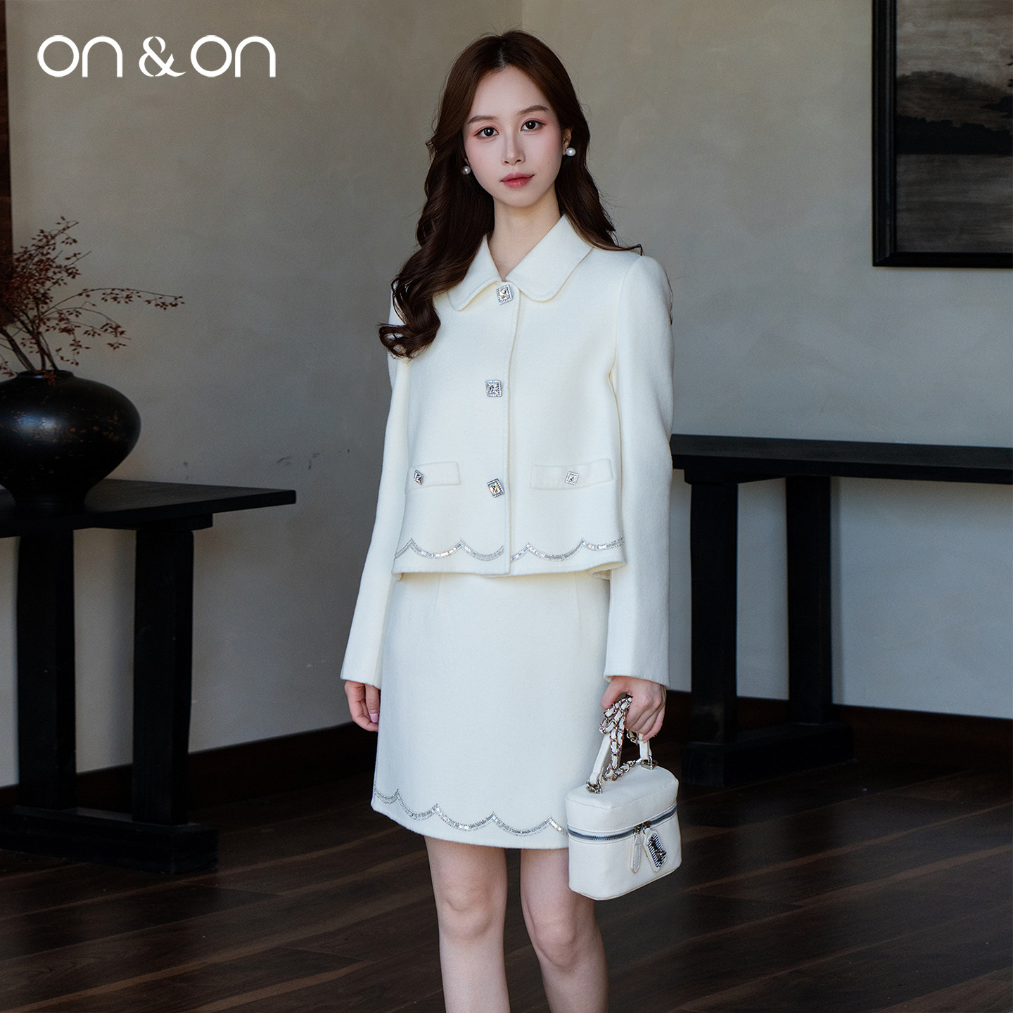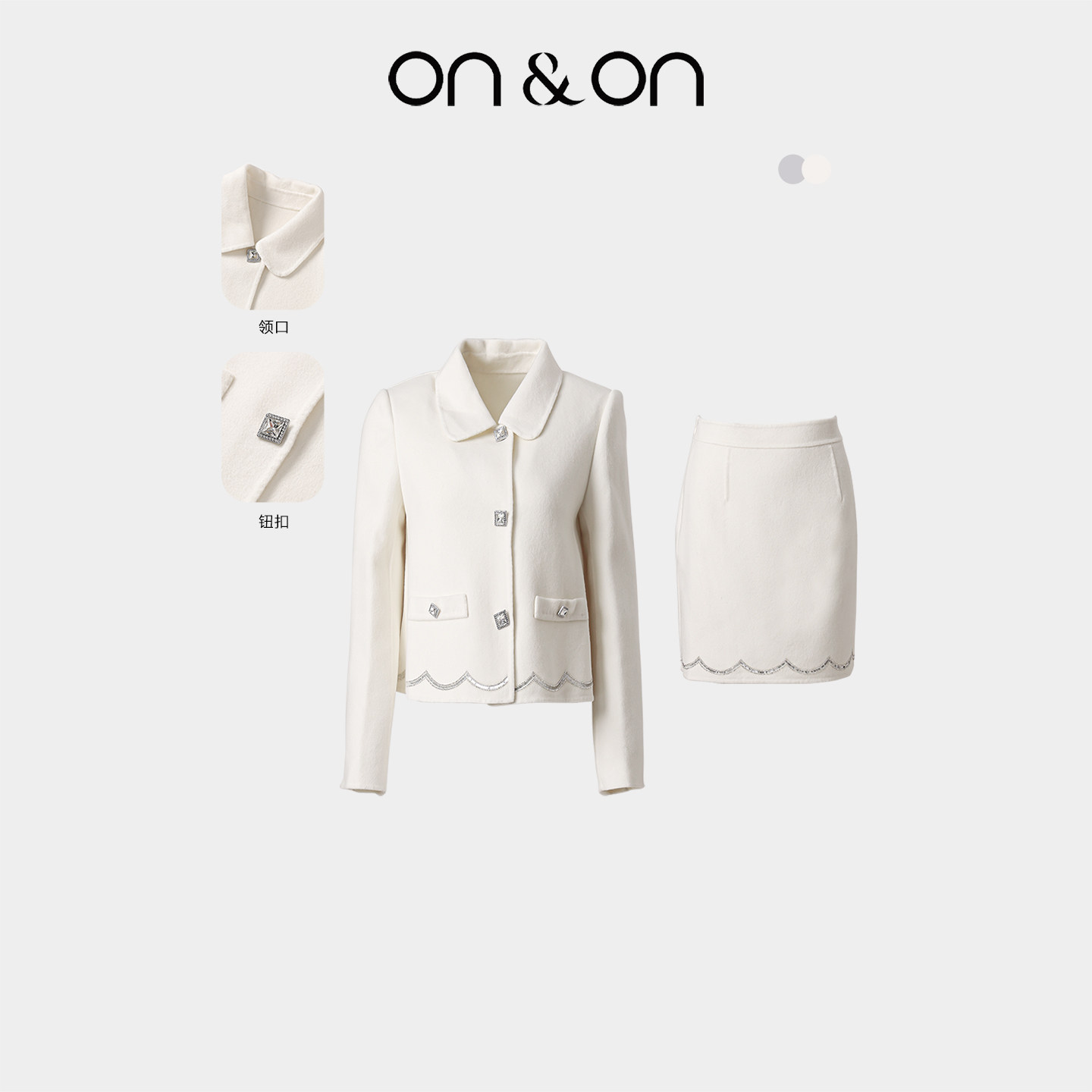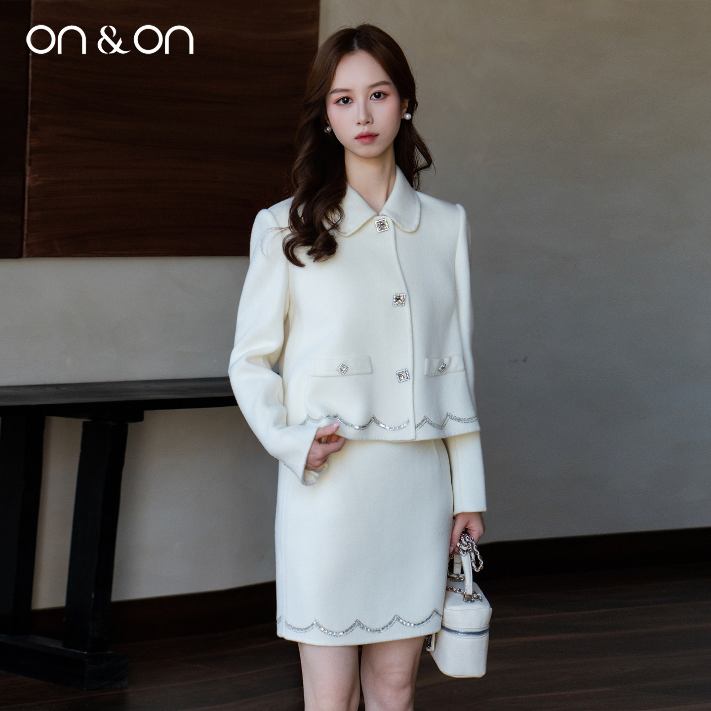 ON&ON/安乃安2025冬季新款法式翻领方扣时尚气质减龄羊绒套装裙