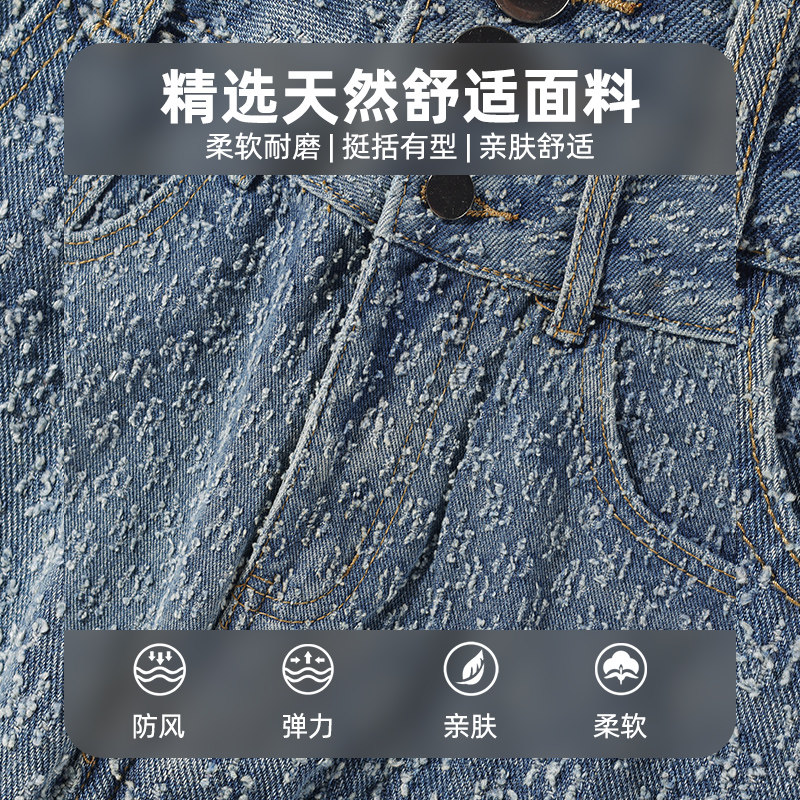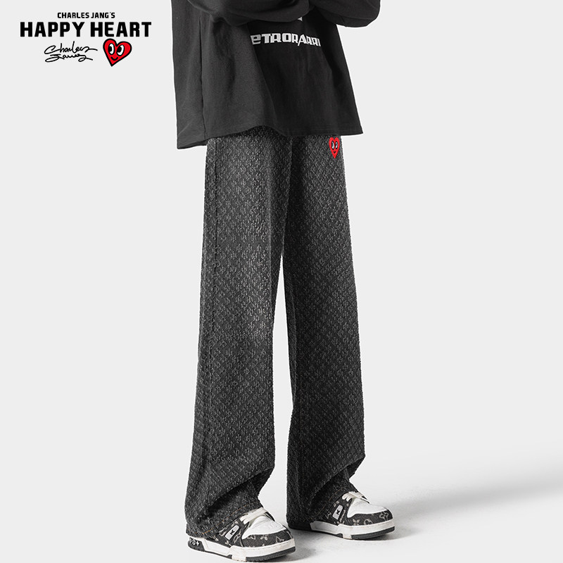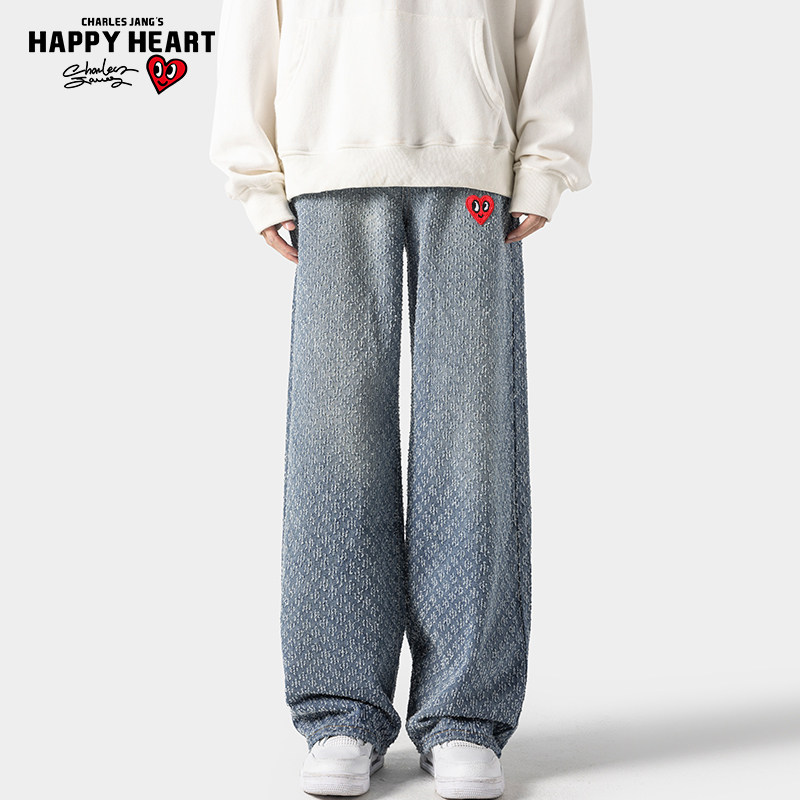 查尔斯桃心 美式星空纹牛仔裤男2025新款春秋季宽松直筒水洗长裤