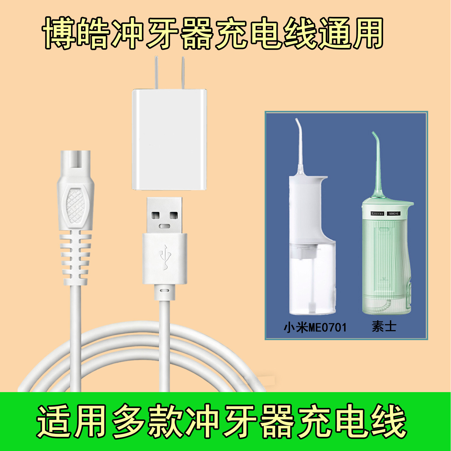 博皓冲牙器充电线5002小米素士美的海尔拜尔博皓5025 f27 f18电动洗牙器水牙线充电器配件电源线
