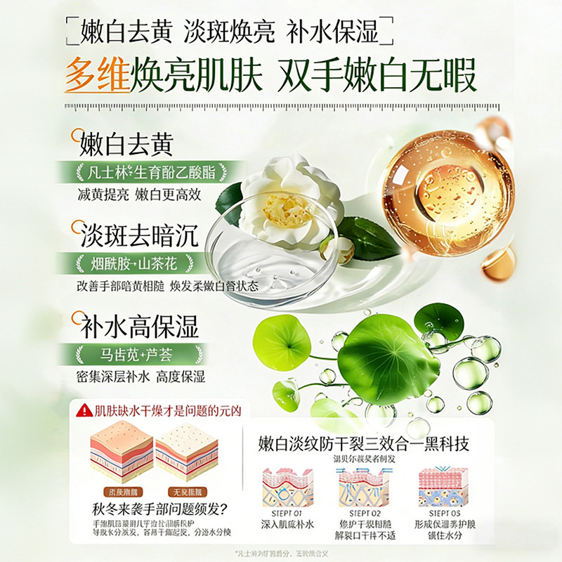 凡士林护手霜滋润保湿补水防干裂粗糙美白嫩白去手纹国货润肤淡化