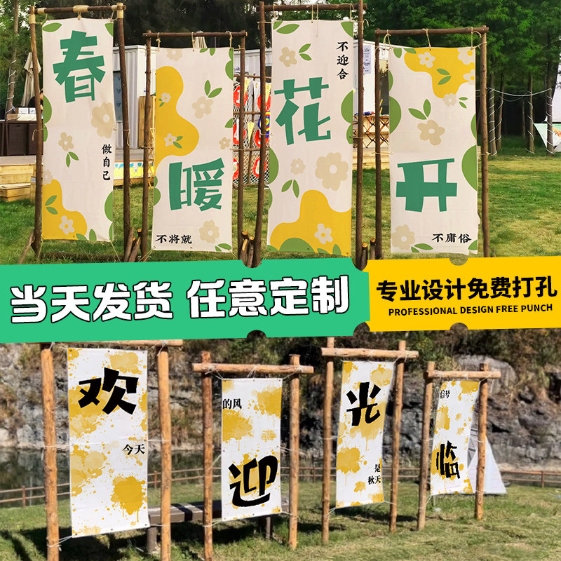 露营旗帜定制今e日放空营地帆布挂旗集市广告麻布条幅野营帐篷围