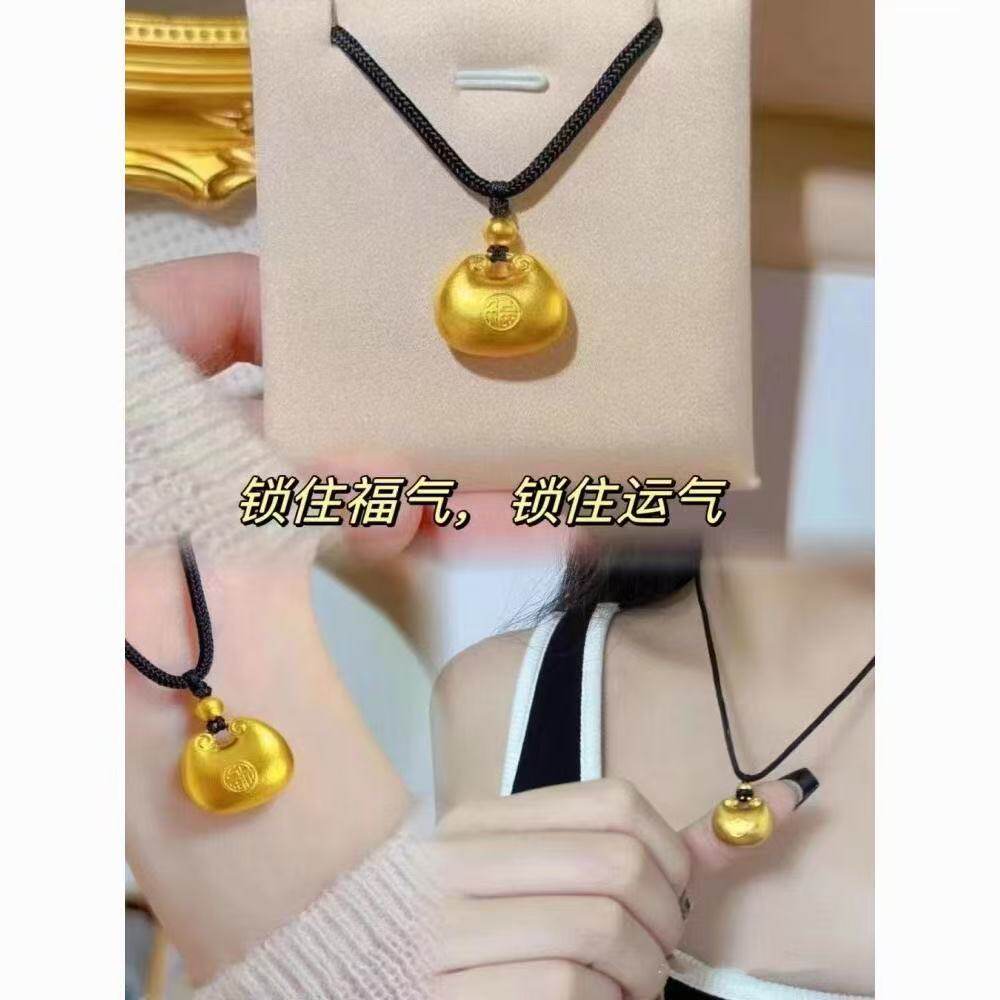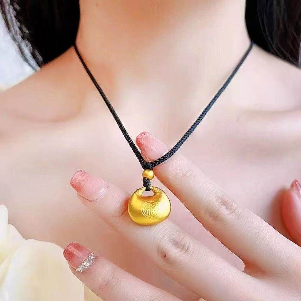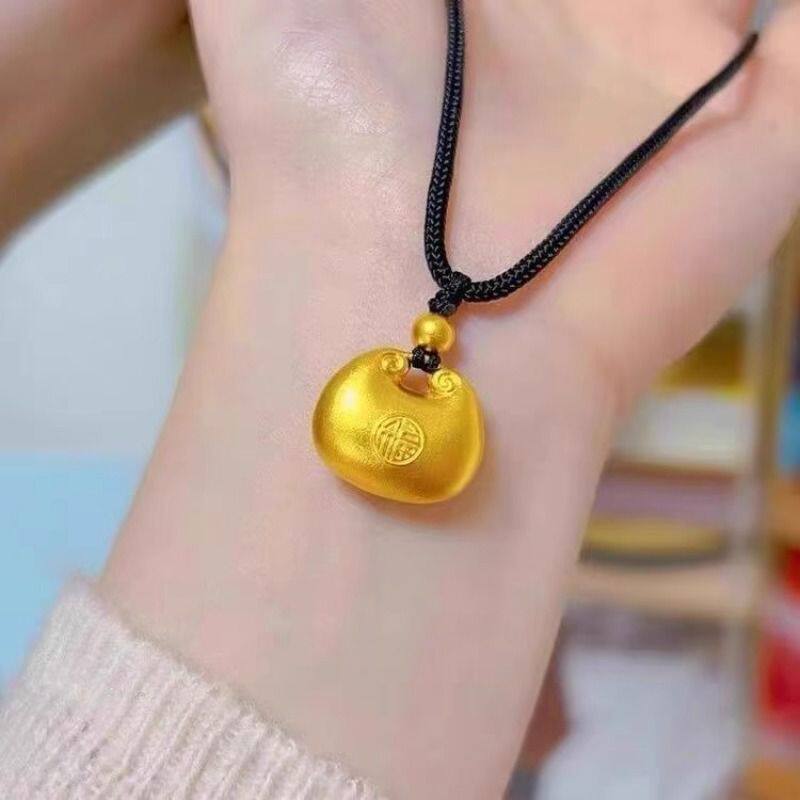 大胖福吊坠项链男女款古法小金坨无事牌平安扣福字实心挂坠礼物