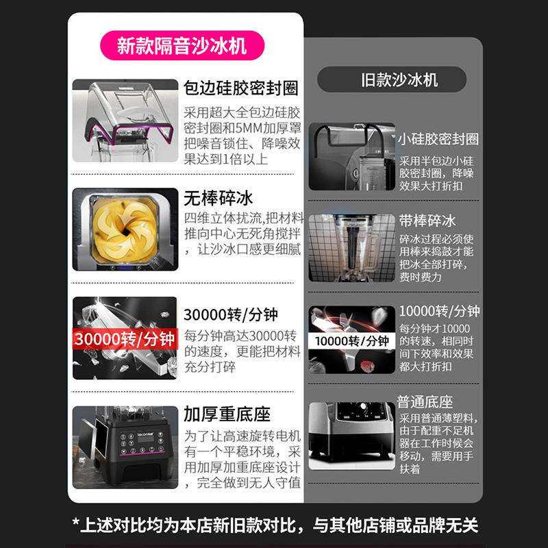 乐创隔音沙冰机商用奶茶店带罩静音碎冰榨汁萃茶机刨冰沙破壁料理