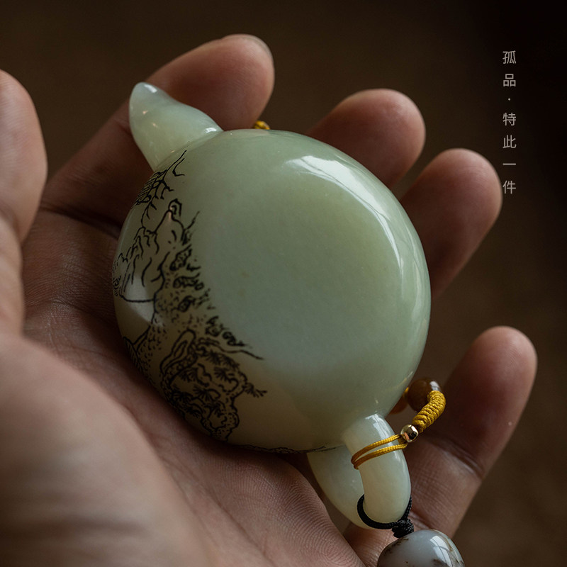 孤品【和田玉· 把把壶】手把件高档文玩男士礼品 附赠鉴定证书