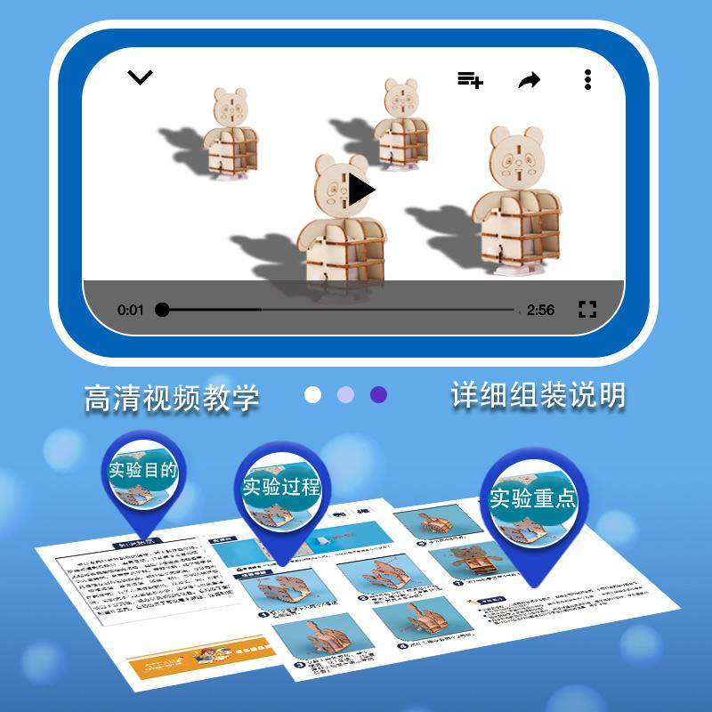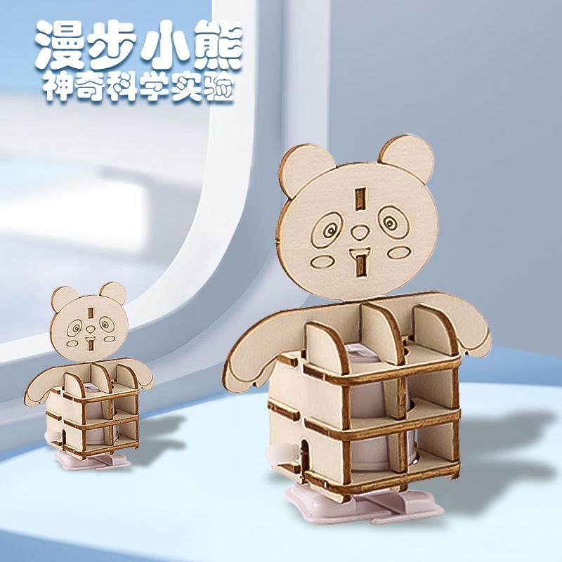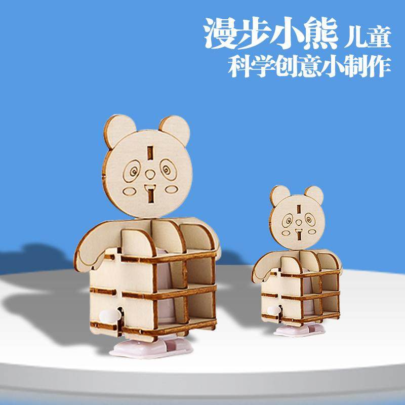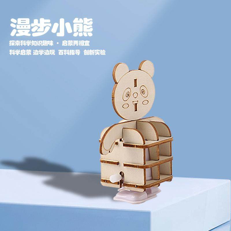 DIY机械发条走路机器人儿童拼装玩具漫步小熊科技小制作科教玩具