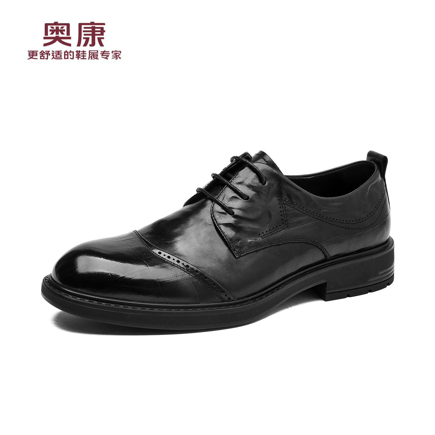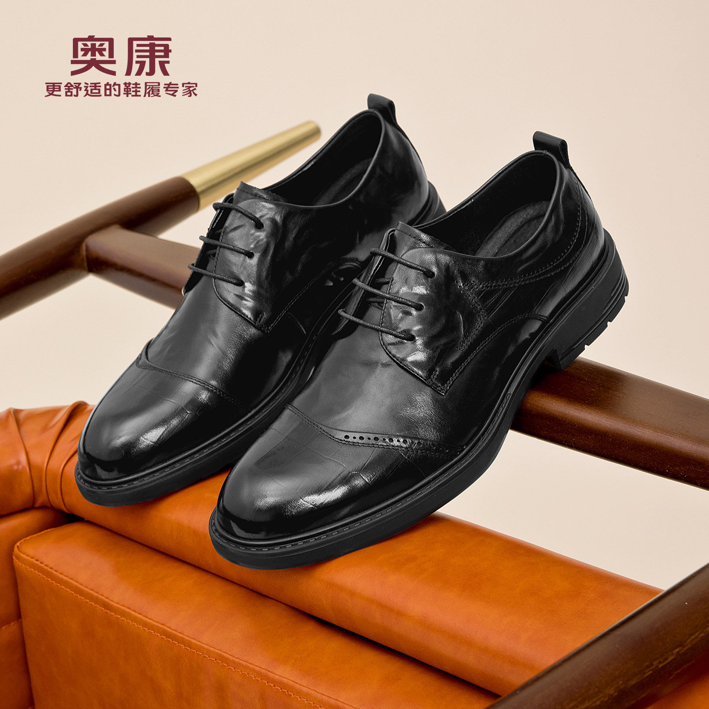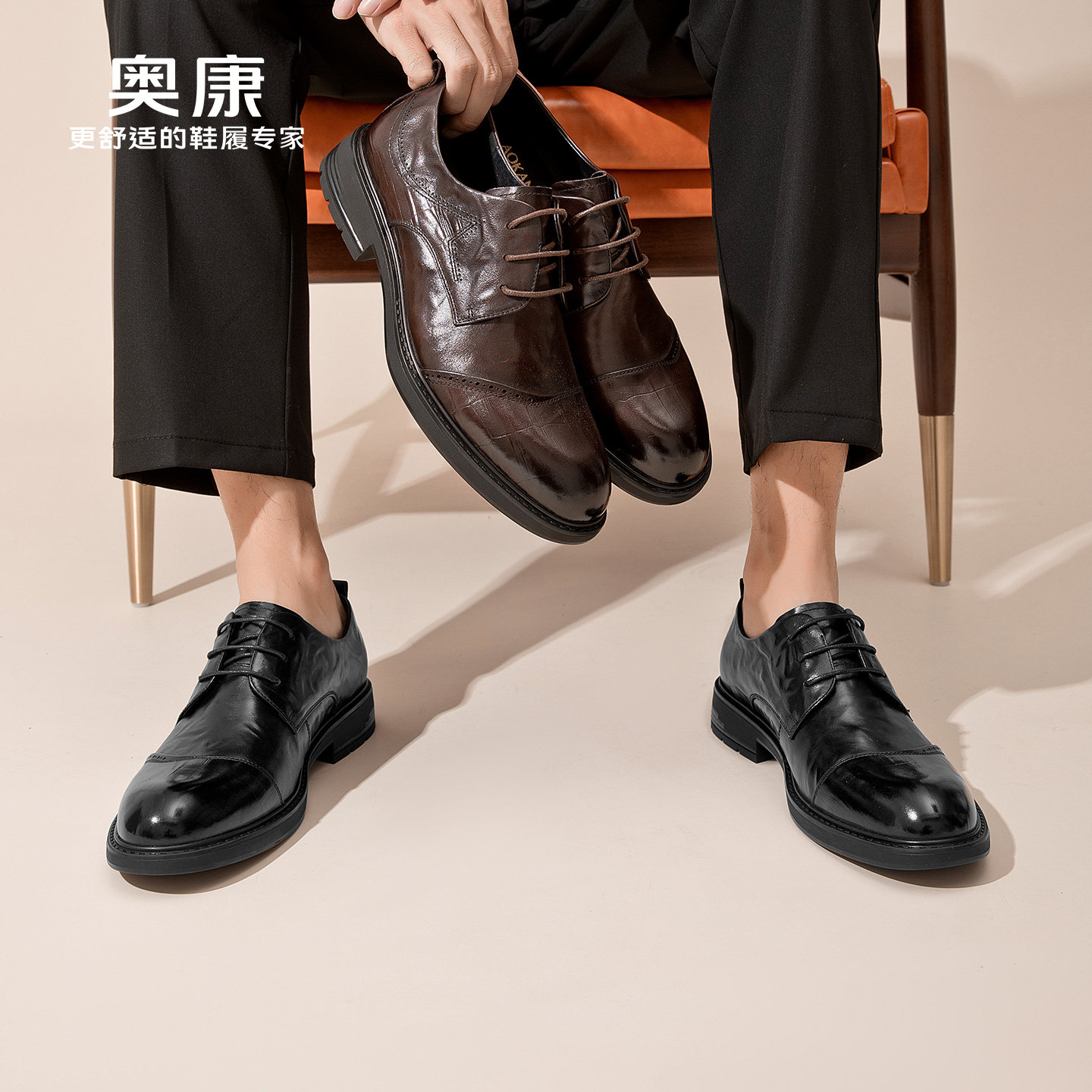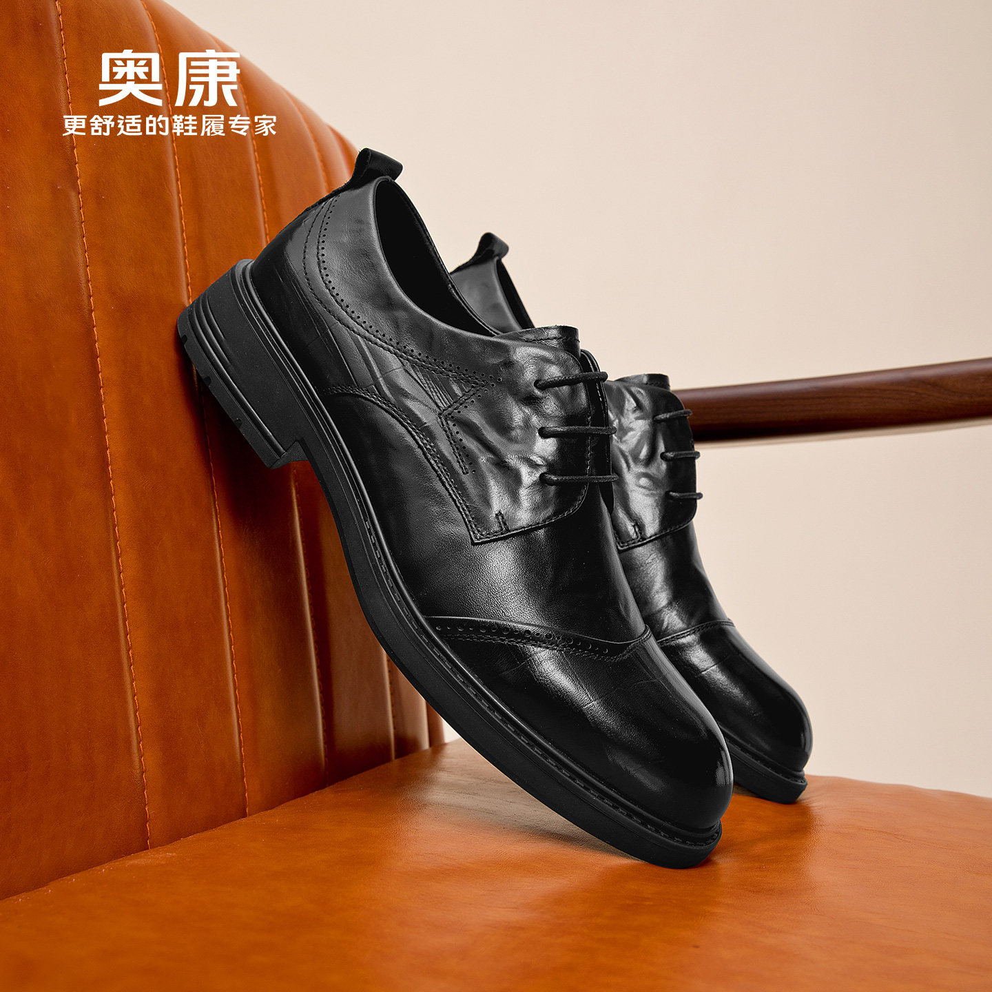 奥康男鞋春秋季商务正装皮鞋牛皮办公室真皮系带男士工作大码皮鞋