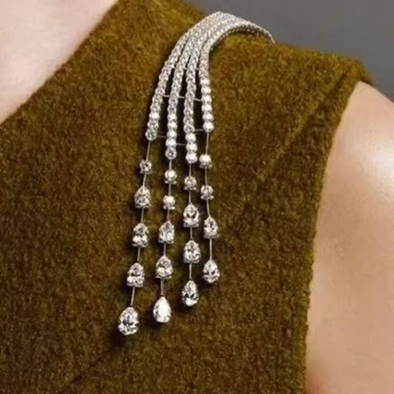 高级感流星胸针高端中古风水钻长流苏肩针优雅气质大衣配饰蝴蝶