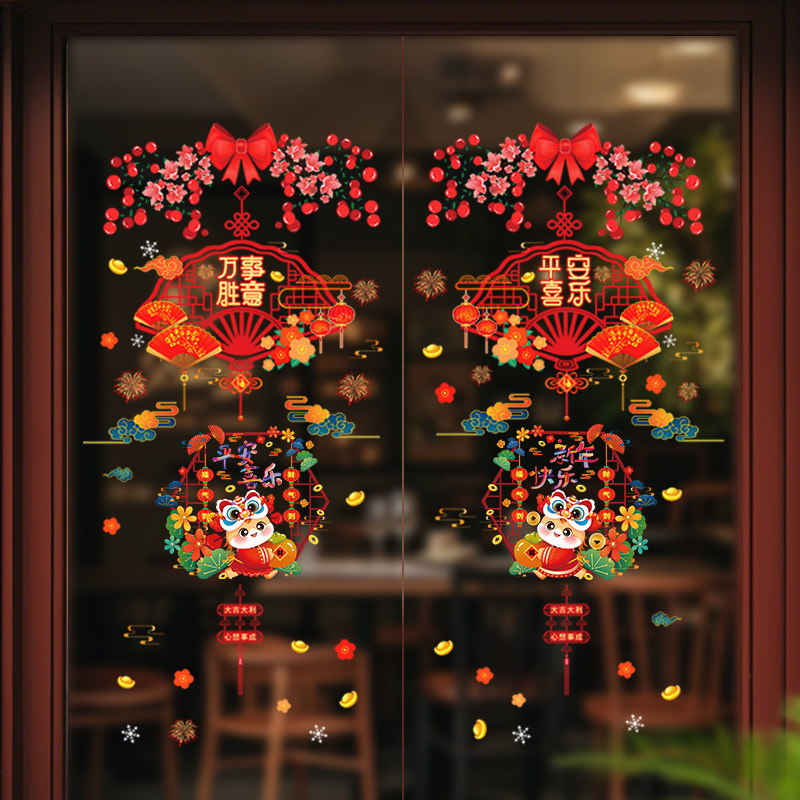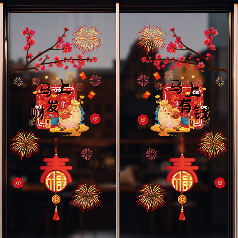 2026新年窗花马年装饰窗户玻璃门贴纸静电橱窗贴春节过年布置贴画