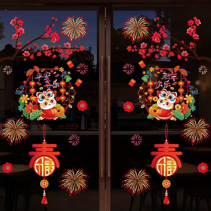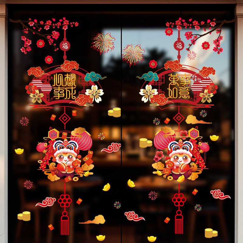 2026新年装饰布置春节贴纸过年门贴元旦福字窗花贴玻璃静电贴年画