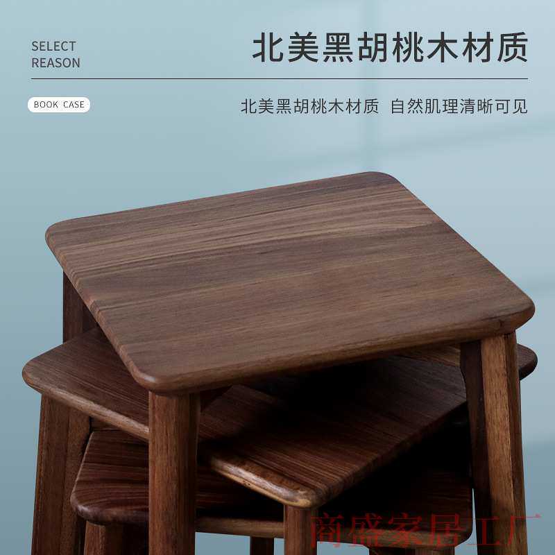 北美黑胡桃木餐凳实木高凳矮凳成人餐板凳家用拆装客厅实木方凳