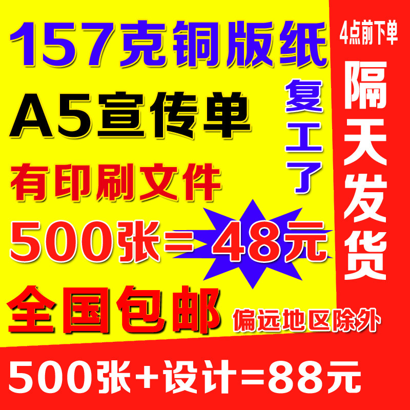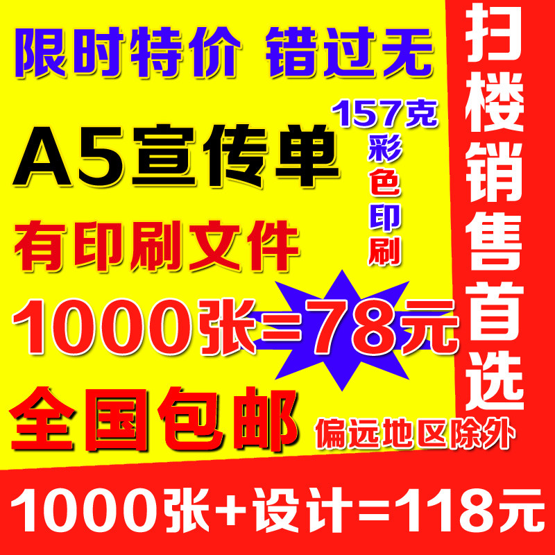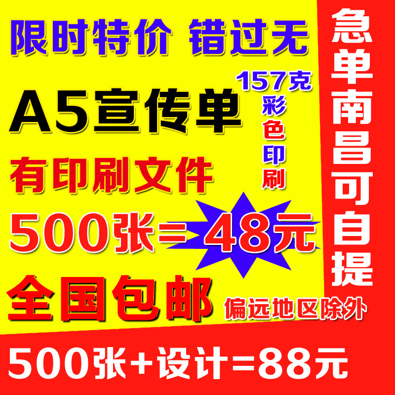 48元500张A5设计制作双面彩页打印定做广告宣传单印制三折页海报