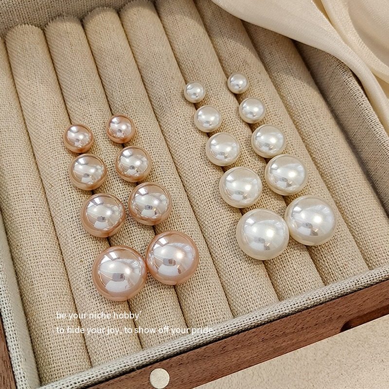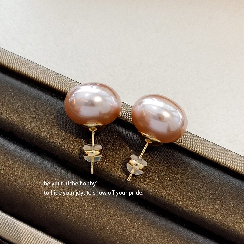 馒头粉光珍珠耳钉女925银针轻奢气质耳环2025新款小众耳饰品