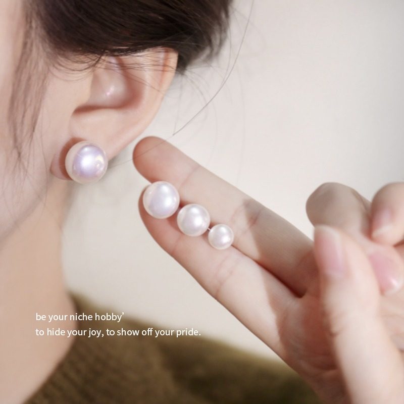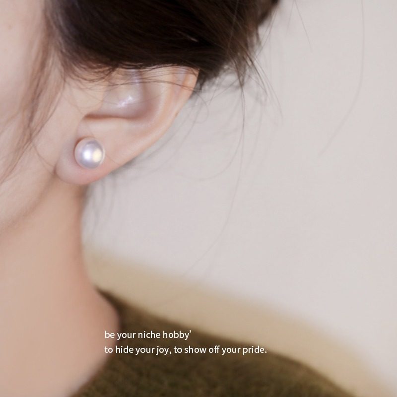 999纯银耳钉女施家珍珠馒头珠耳环扁圆高级气质法式复古轻奢耳饰