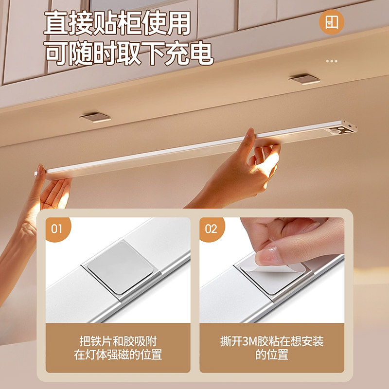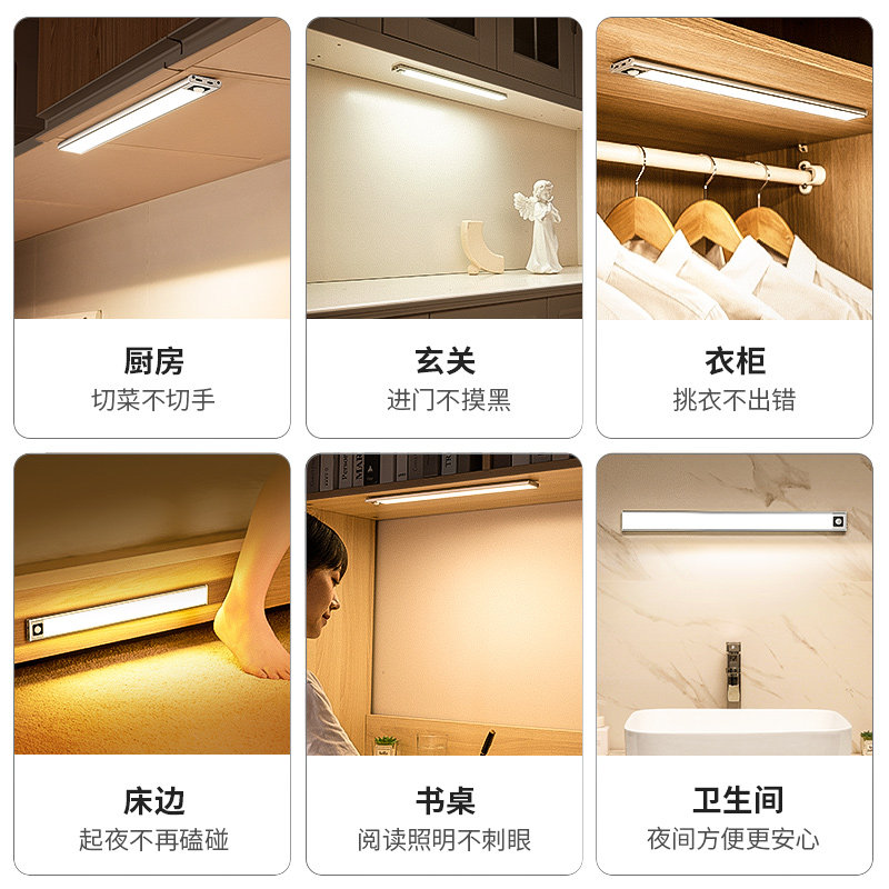 LED橱柜灯带智能感应自动充电式衣柜底灯条长条入户门鞋柜子磁吸
