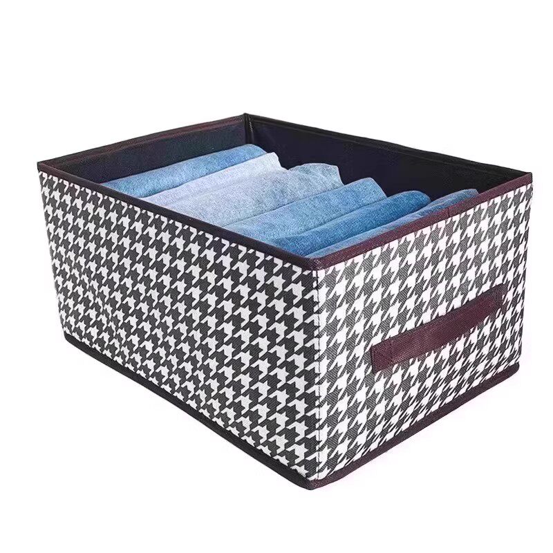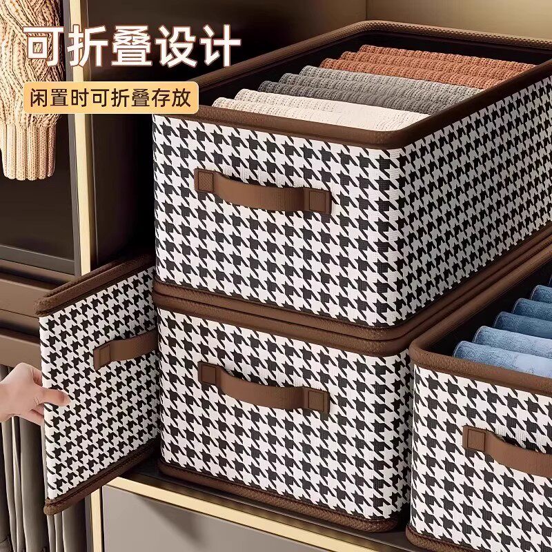 衣服收纳箱千鸟格家用衣柜分层整理收纳神器放衣物布艺折叠收纳筐