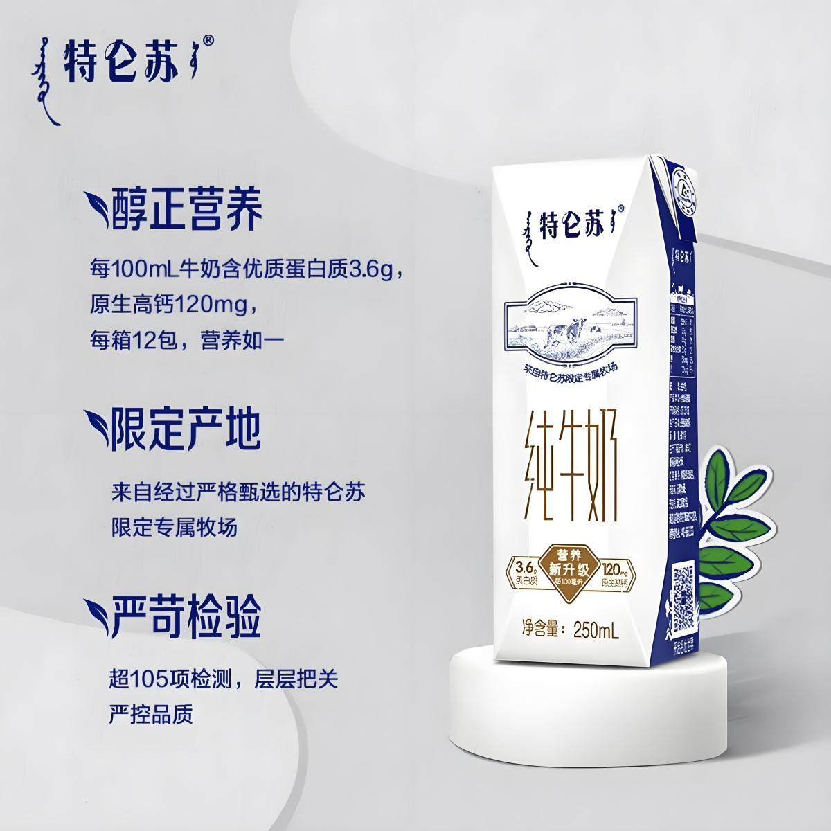 【11月产】蒙牛特仑苏纯牛奶250ml*12盒环保礼袋装C