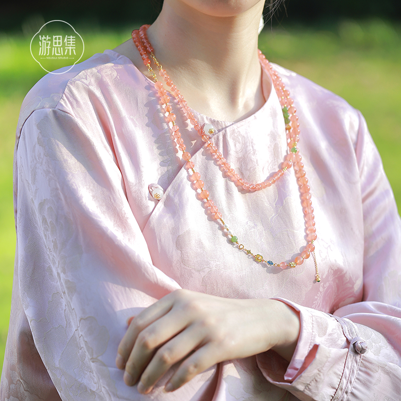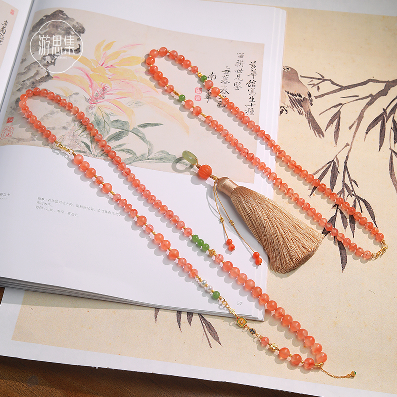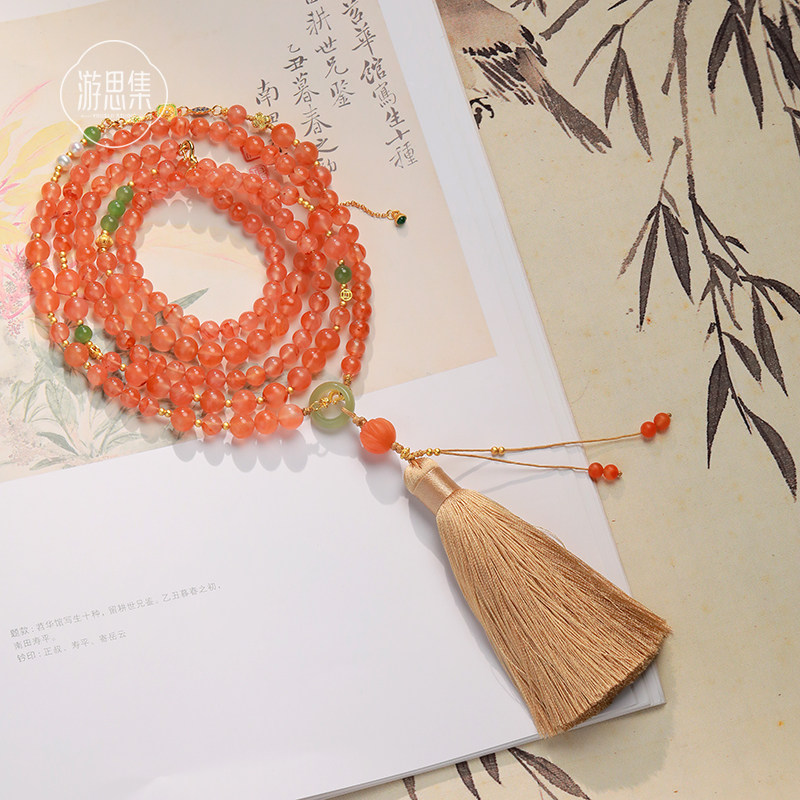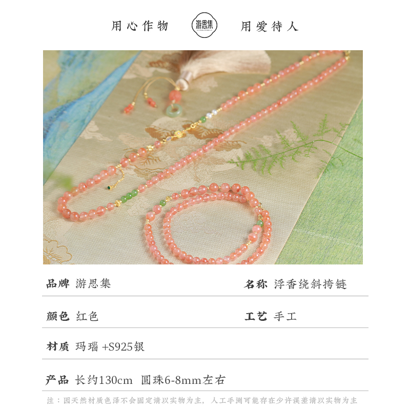 游思集新款天然西瓜汁冰飘南红玛瑙斜挎链新中式国风文玩背背链女